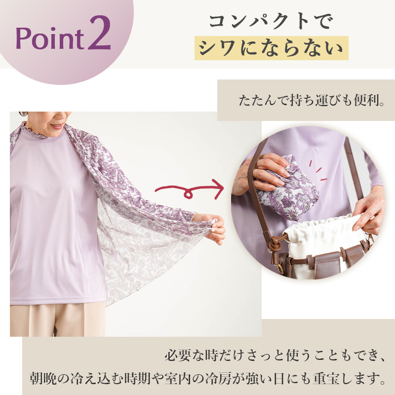 ●柔らかくなめらかで肌触りの良い素材は雑多に鞄にしまっても折り畳んでもシワになりにくく型崩れしません。
