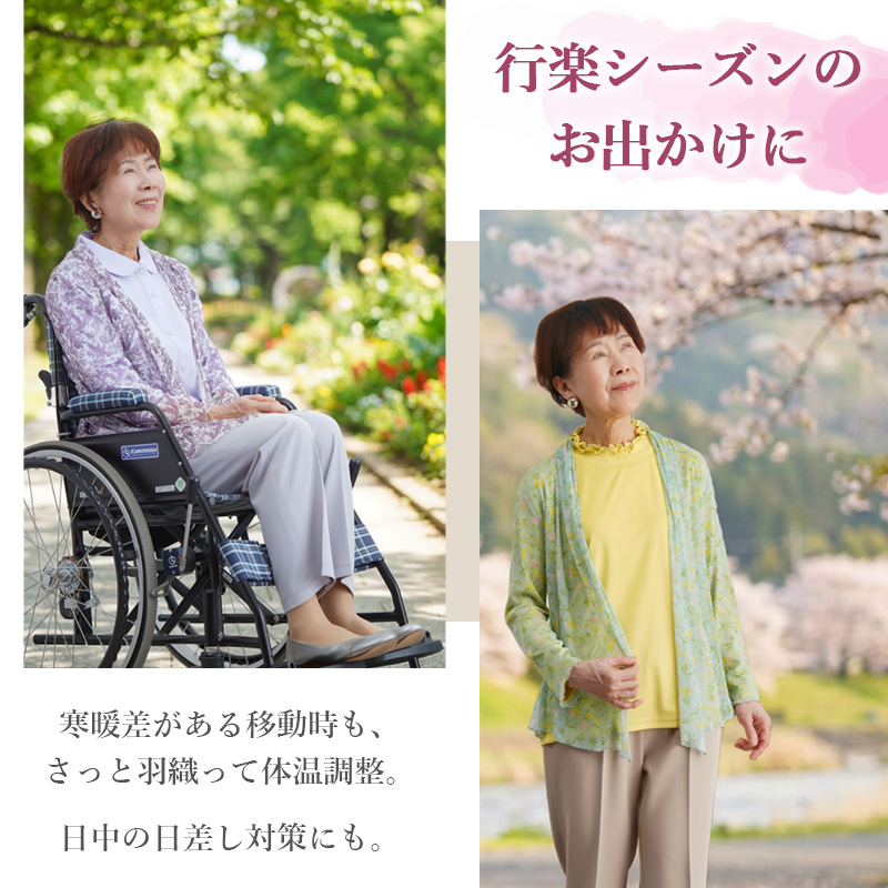 ●春はロンTの上からサッと羽織るカーディガンとして、夏は室内防寒着や冷房対策としても活躍します。