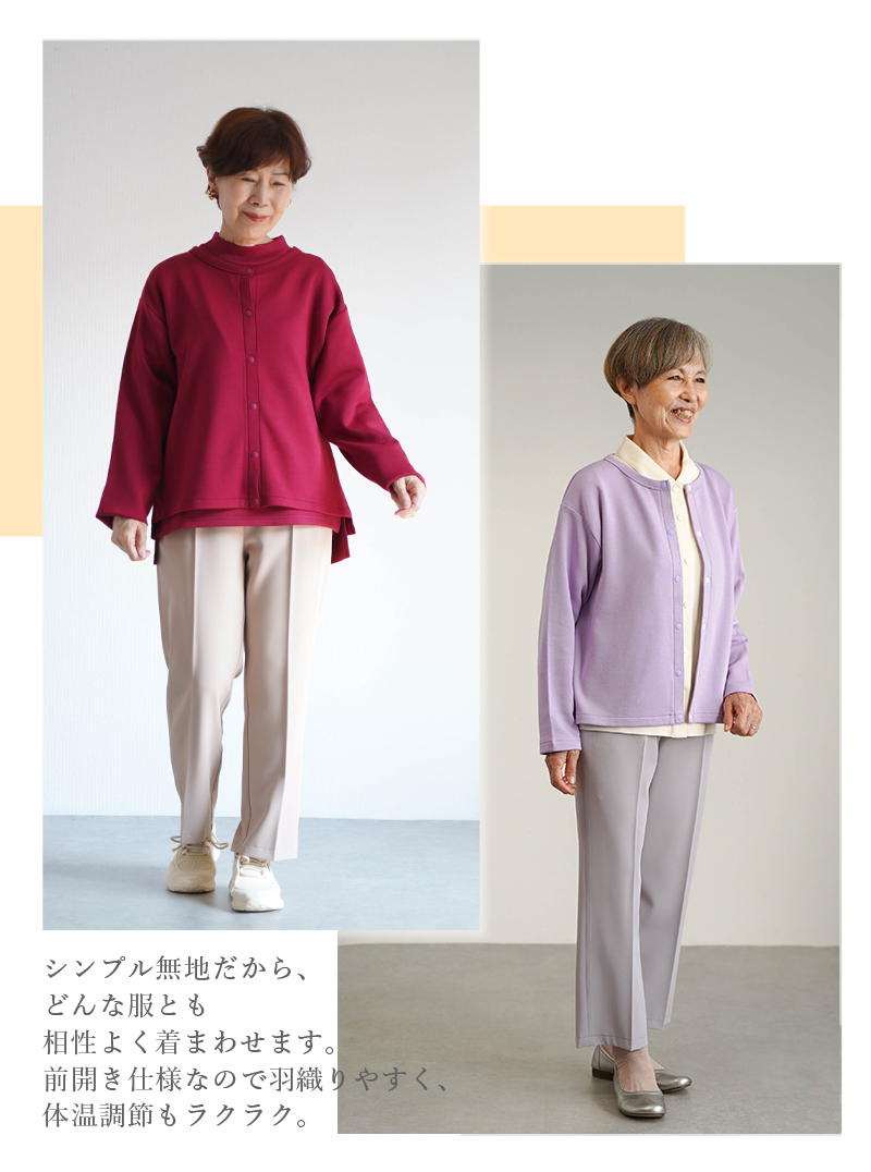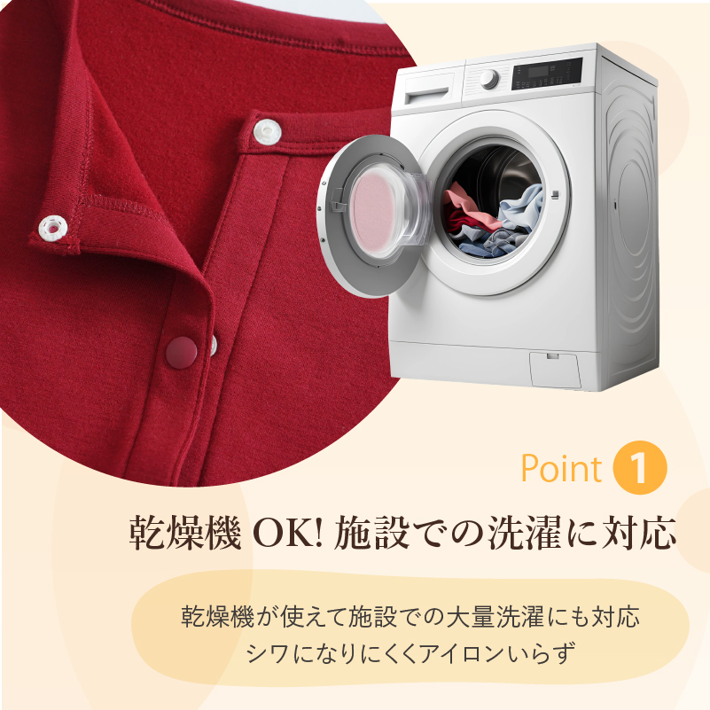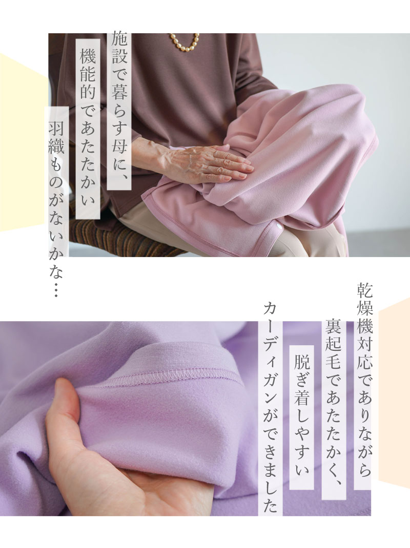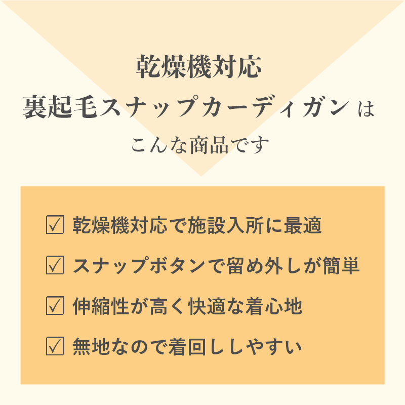 ●乾燥機対応にこだわって開発した、施設利用に安心の裏起毛カーディガンです。