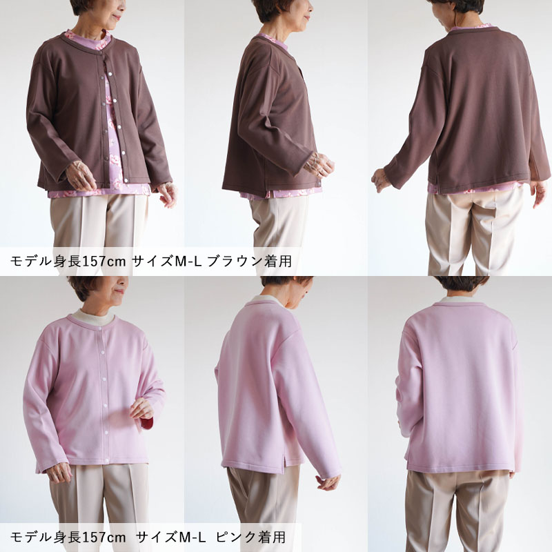 [装生] 乾燥機対応 もちもち 裏起毛 スナップボタン カーディガン