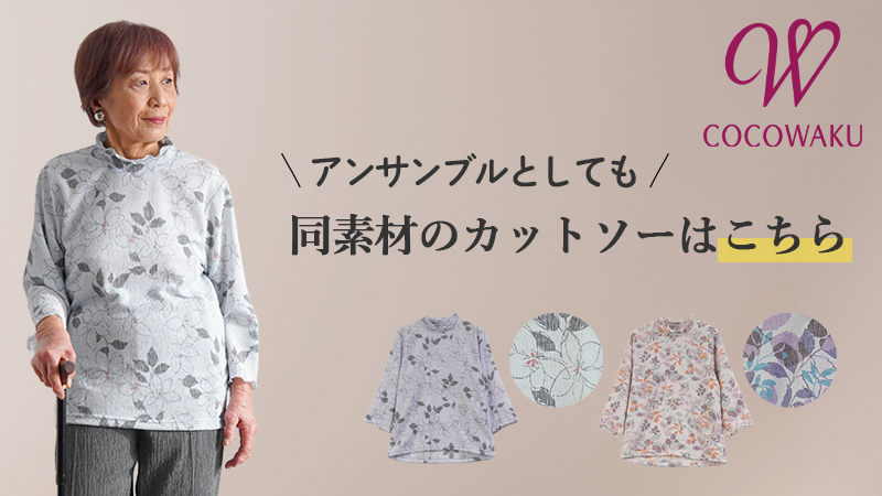 ● 名前記入タグ付きで持ち物管理も安心。短め袖&上品な花柄で“着るだけで映える”のも魅力。デイサービス・病院・面会時にも使えるシニア服/介護服です。