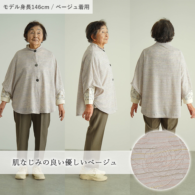 [装生] 日本製 乾燥機対応 春夏 羽織り 肩掛け ポンチョ カーディガン バラ柄ジャカード