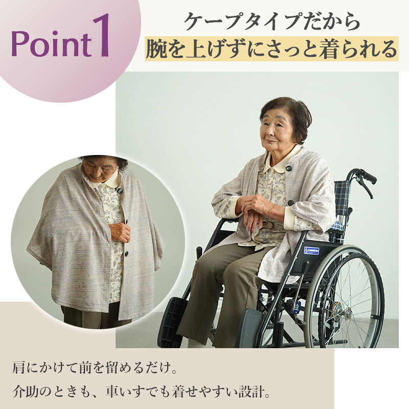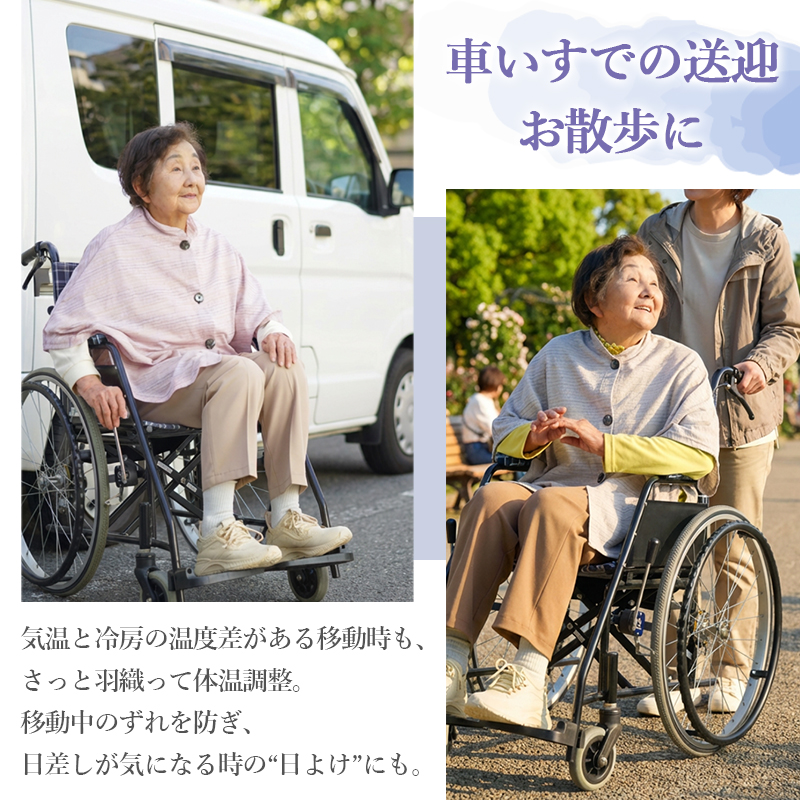 ● 腕を上げにくい方にもやさしい、薄手の冷房対策ケープです。