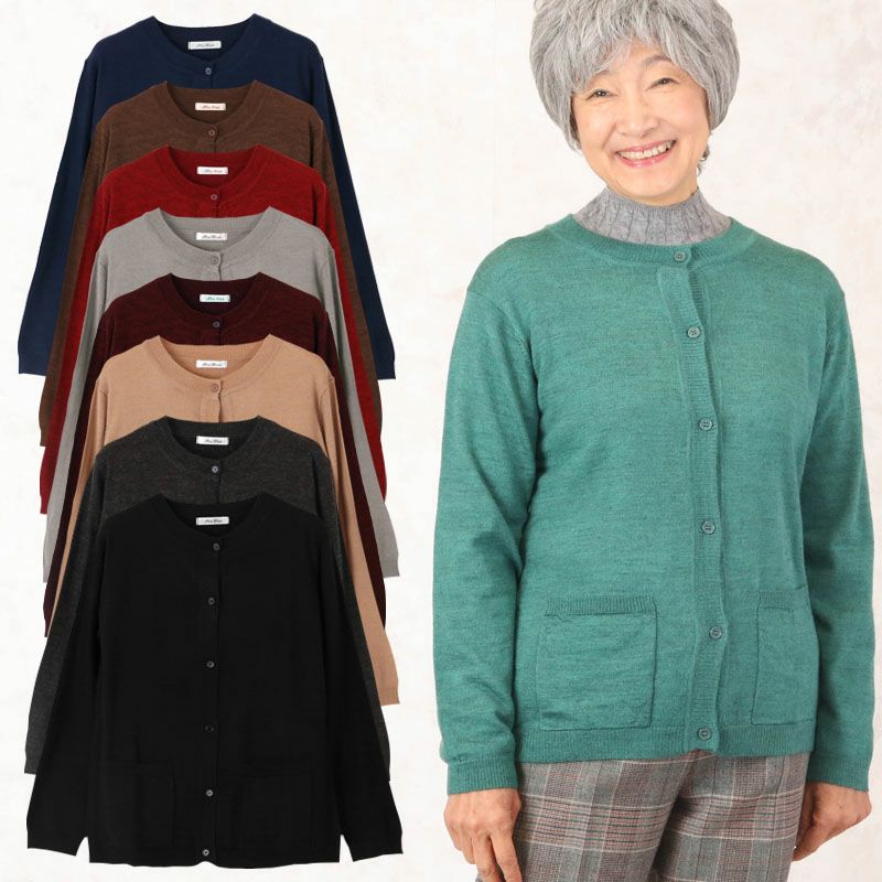 明るいカラーが楽しめる、ウール混ののびのびニットカーディガン。