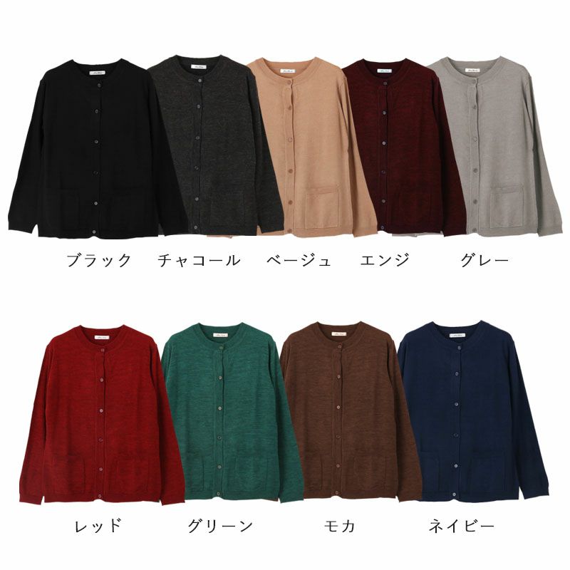 *春夏・通年 毛混無地ニット丸首カーディガン