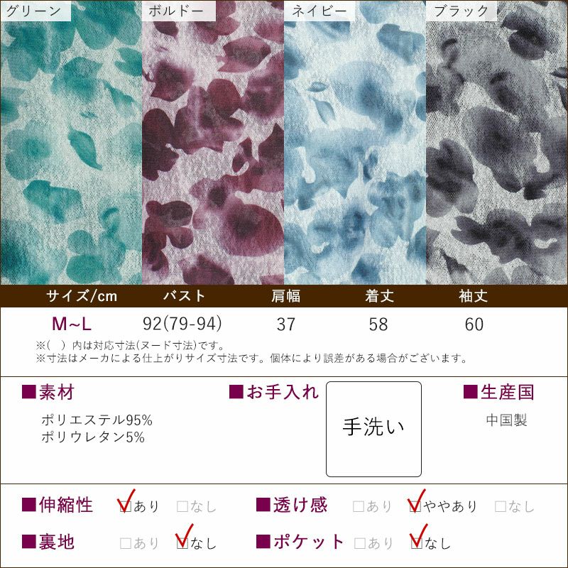 ぼかし花柄 ハイネックメロー 長袖メッシュカットソー