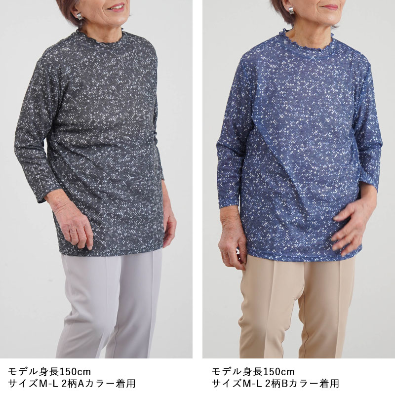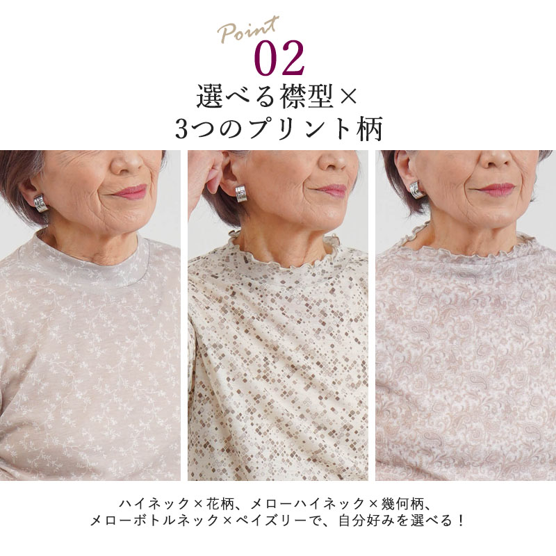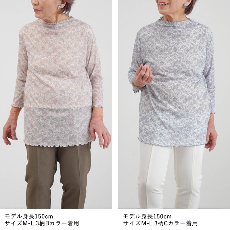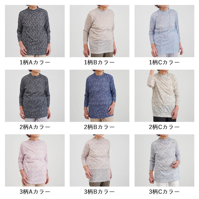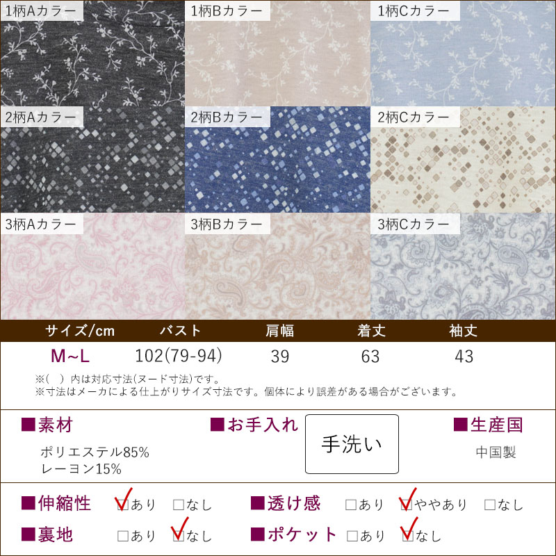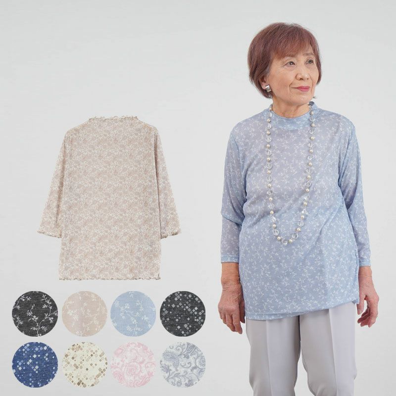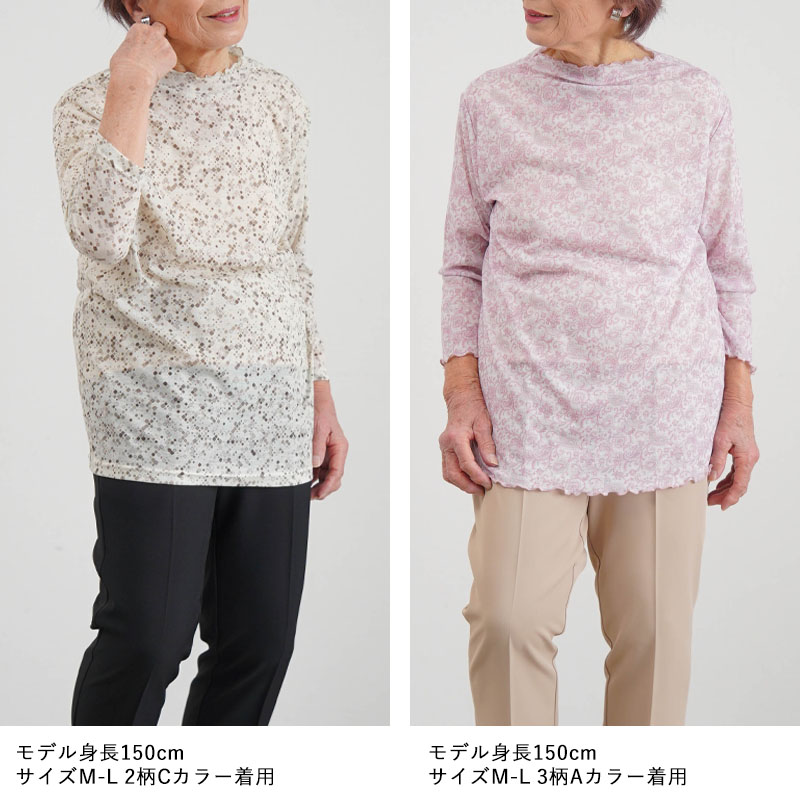 ● 春夏にぴったりの透け感&おしゃれプリント:やや透け感があり、インナーとしても◎。3つの襟型×異なるプリント柄で選ぶ楽しみも。