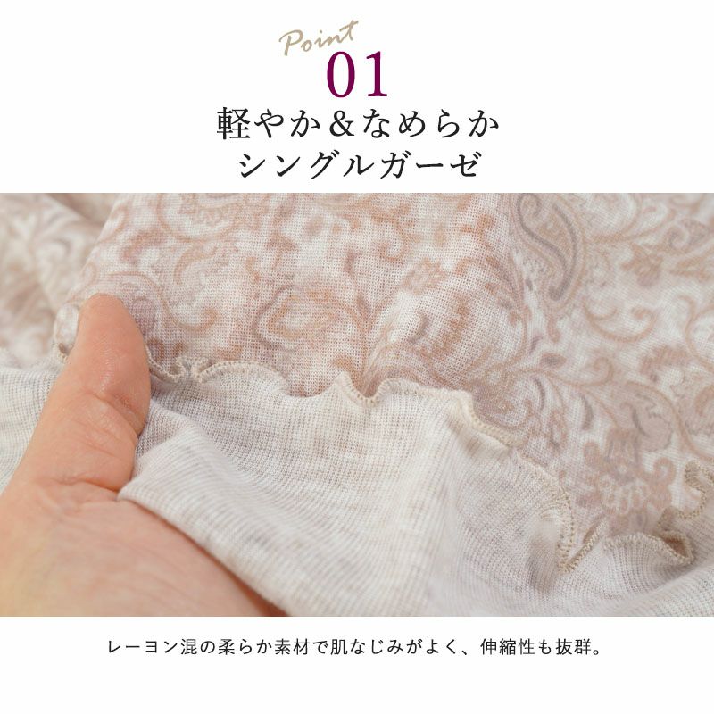 ● ふんわり軽やか・柔らかシングルガーゼ:レーヨン混素材で肌なじみがよく、とろりとなめらかな着心地。伸縮性も抜群で快適!