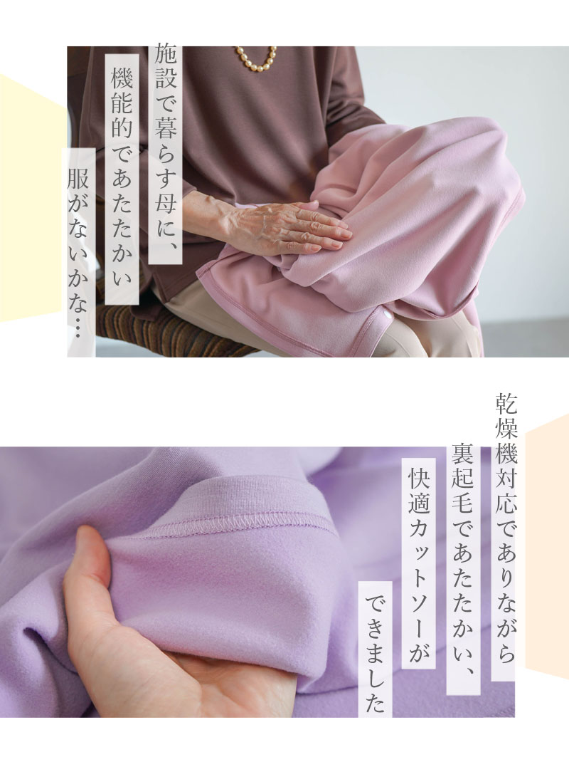 ●乾燥機対応にこだわって開発した、施設利用に安心の裏起毛カットソーです。