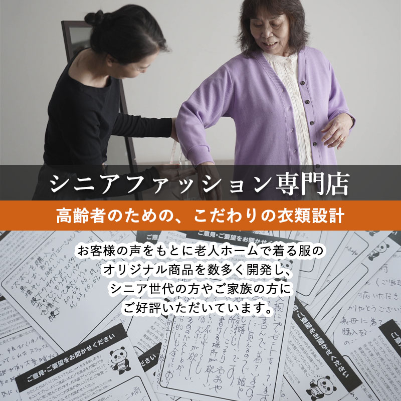 私たちTCマートは年齢を理由にシニア、高齢者の方がお洒落を諦めずに、着やすくお洒落を楽しんでいただけるお洋服を厳選して取り揃えております。毎日の暮らしの中にお洒落と彩りが添えられますように。