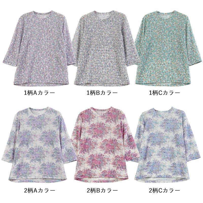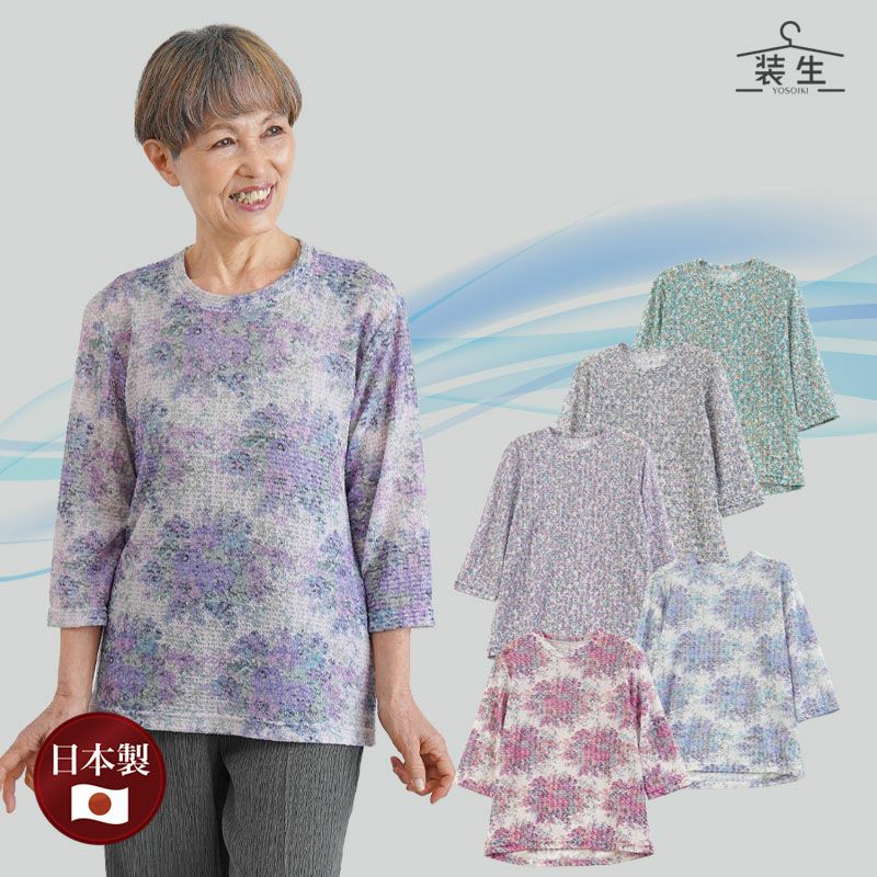 ● 乾燥機対応の花柄七分袖カットソー。 夏はもちろん、春~秋の施設暮らしやデイサービスでも使いやすく、洗濯から乾燥まで対応しながら、おしゃれを楽しめる一枚です。