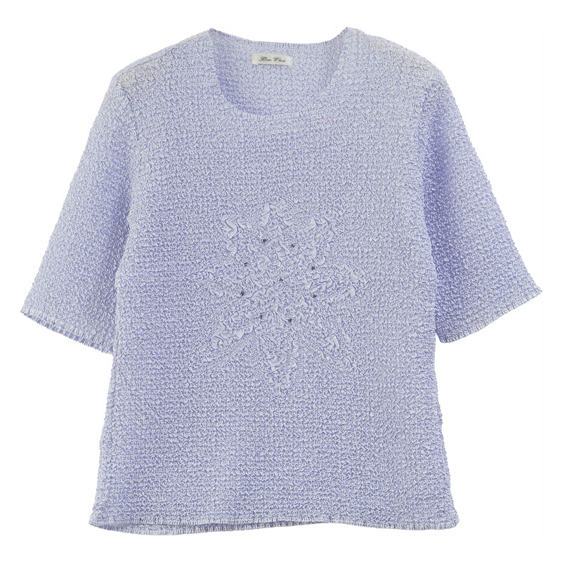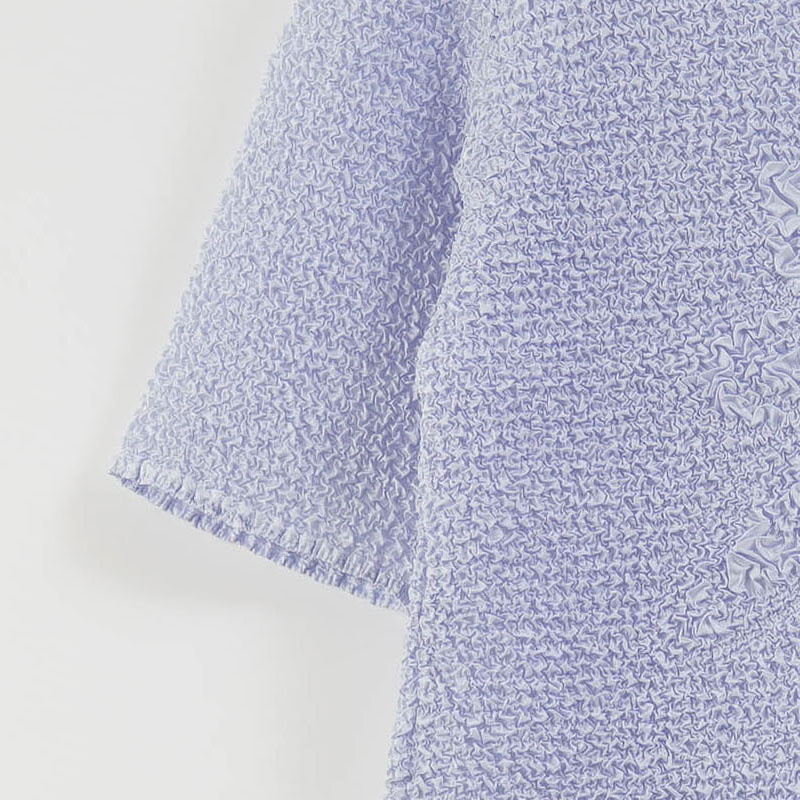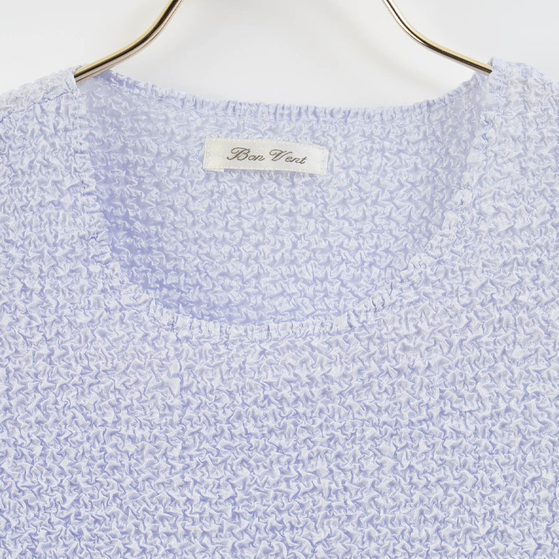 凹凸のある表面が透け感を抑えつつ涼やかな印象に。身体のラインが目立ちにくく、普段着からお出かけまで幅広く活躍します。