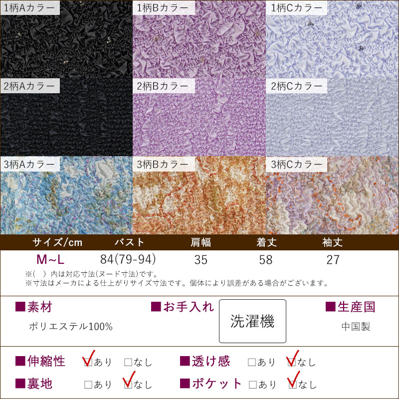 (カラー展開)1柄Aカラー・1柄Bカラー・1柄Cカラー・2柄Aカラー・2柄Bカラー・2柄Cカラー・3柄Aカラー・3柄Bカラー・3柄Cカラー