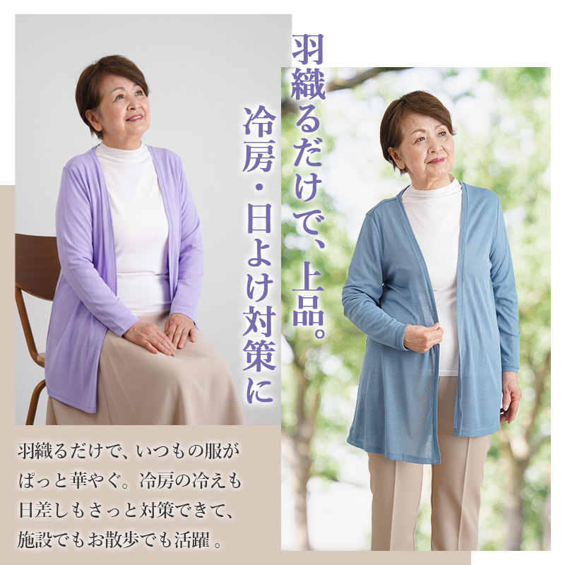 いつもの服の上に着るだけで上品に整い、外出でもきちんと感が出ます。