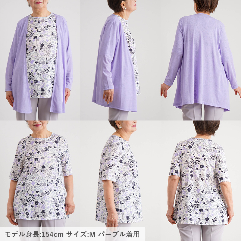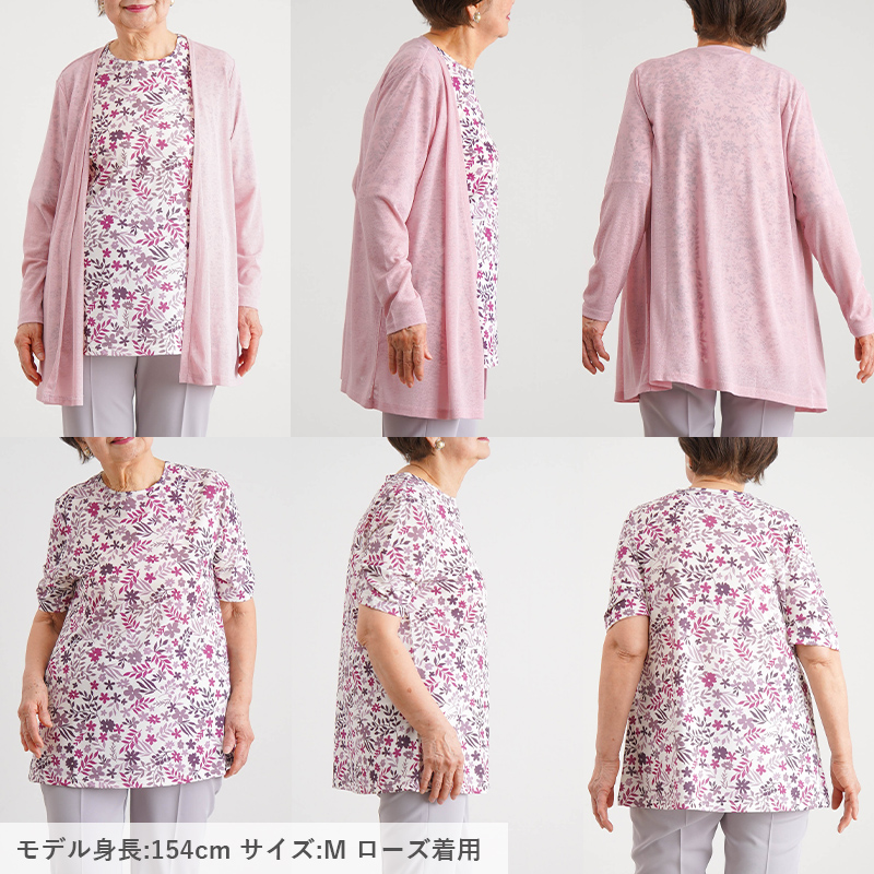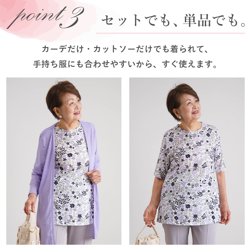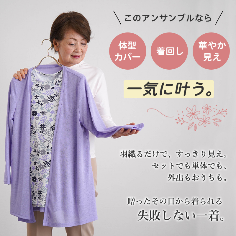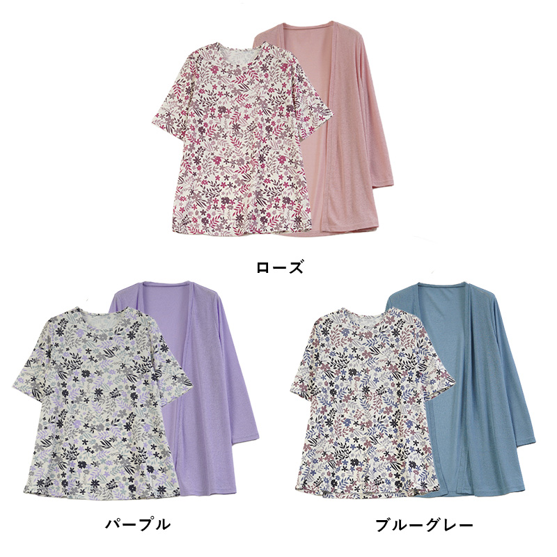 ●羽織り+花柄カットソーがセットになったアンサンブル。