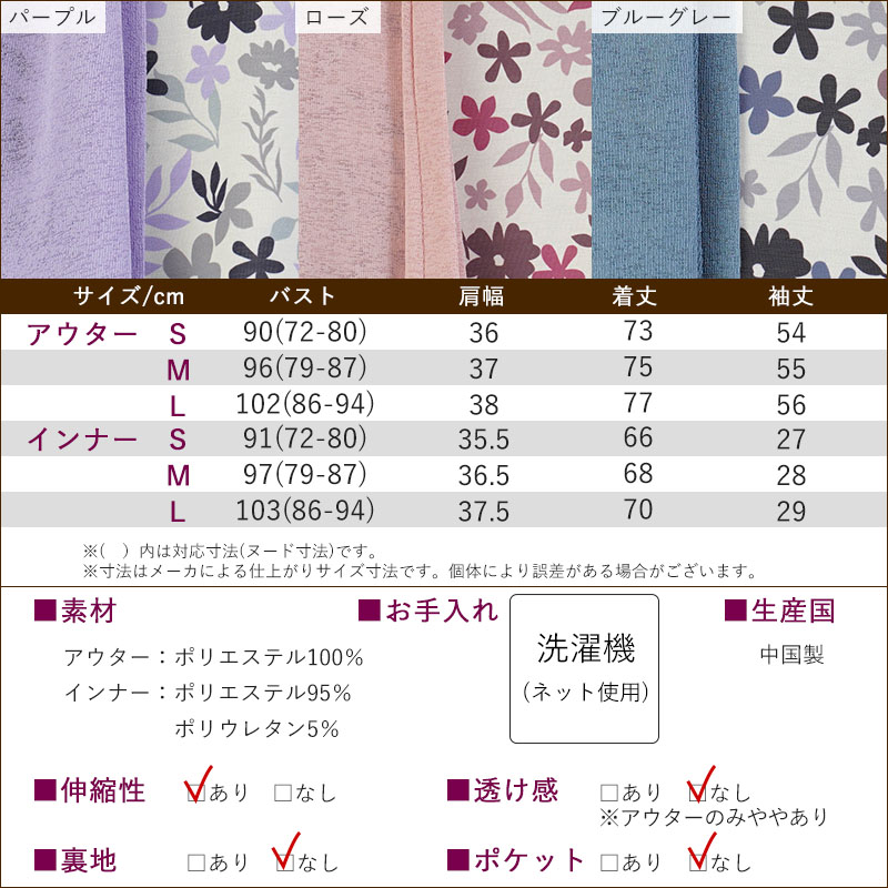 (素材)カーディガン:ポリエステル100% チュニック:ポリエステル95% ポリウレタン5%