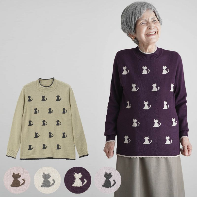 ●さりげない猫ちゃんデザイン:猫ちゃんの小さなシルエットが並ぶデザインで、目立ちすぎず、猫好きの方にも日常に取り入れやすいおしゃれなセーターです。