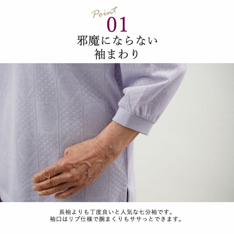 長袖では袖丈が長くなりがち…という方にもおすすめの七分袖丈です。