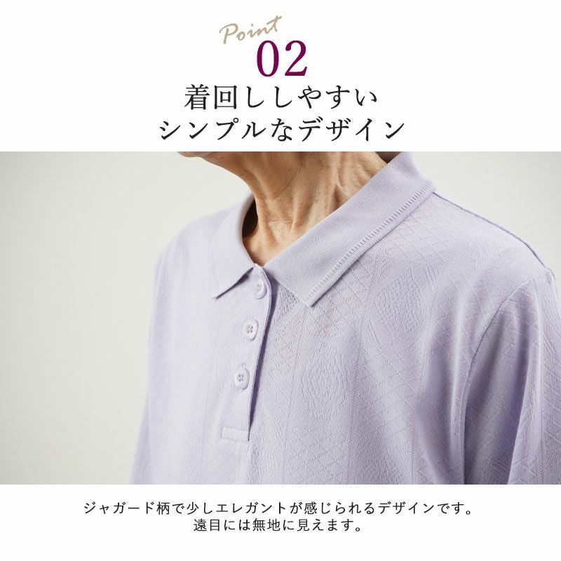 ジャカード地柄七分袖ポロシャツ