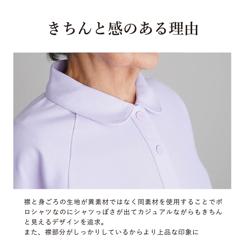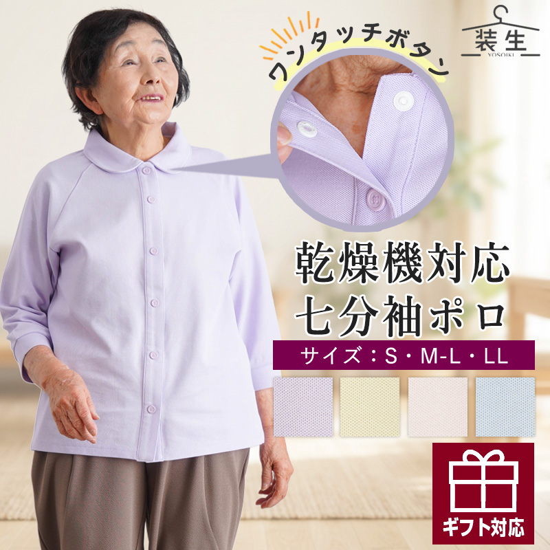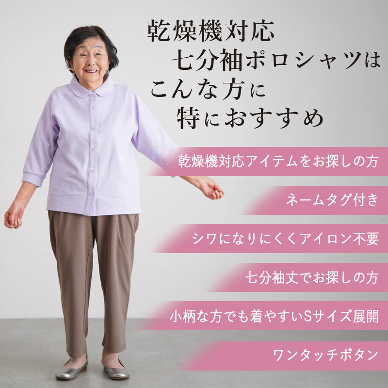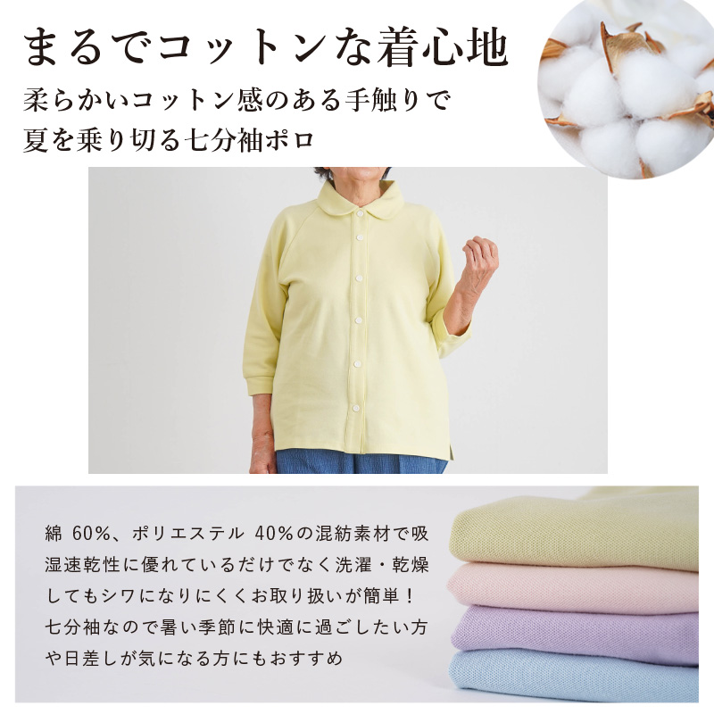 [装生] 乾燥機対応 婦人 鹿の子 七分袖ポロシャツ 全開 スナップボタン