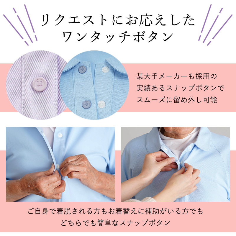 ●ワンタッチで留め外し可能なので指先が動かしにくい方でも着脱しやすい。