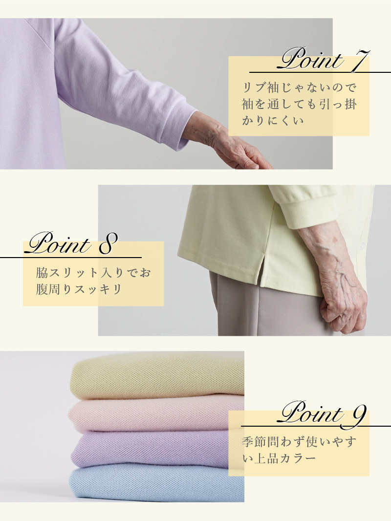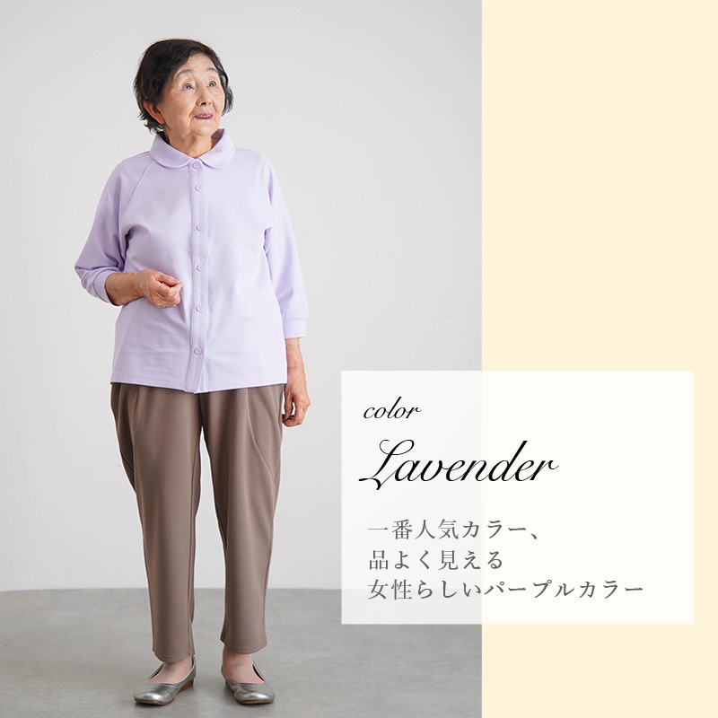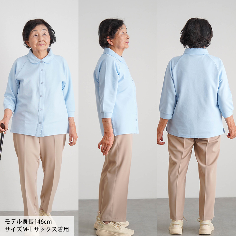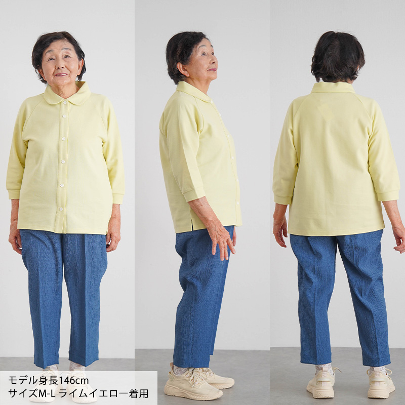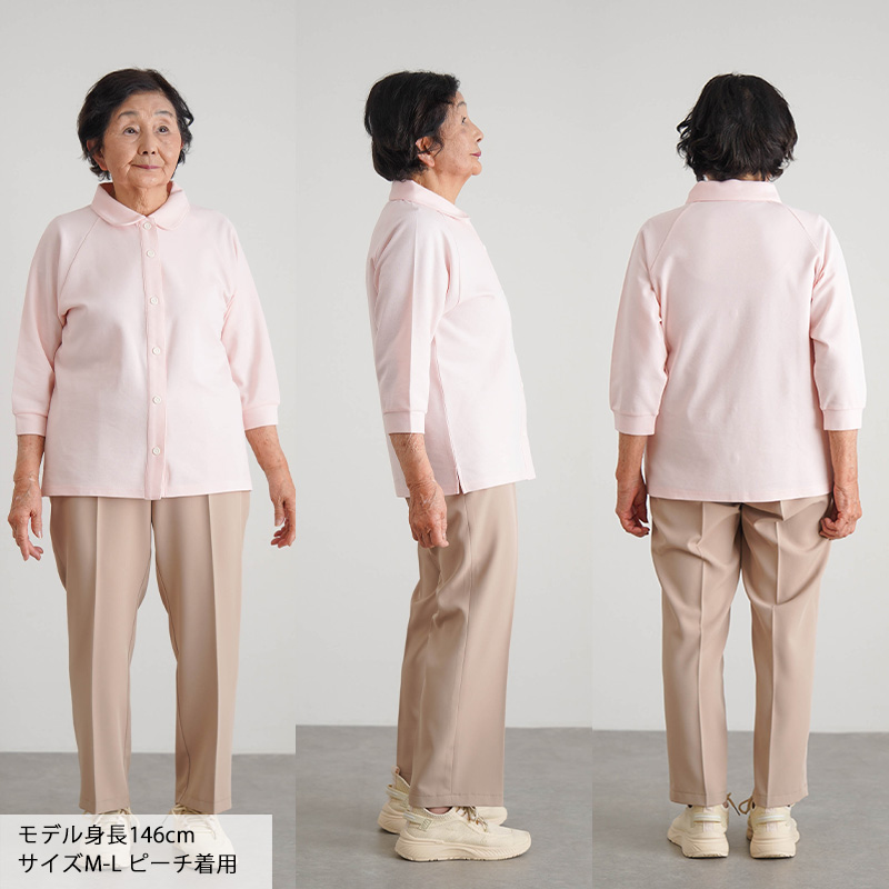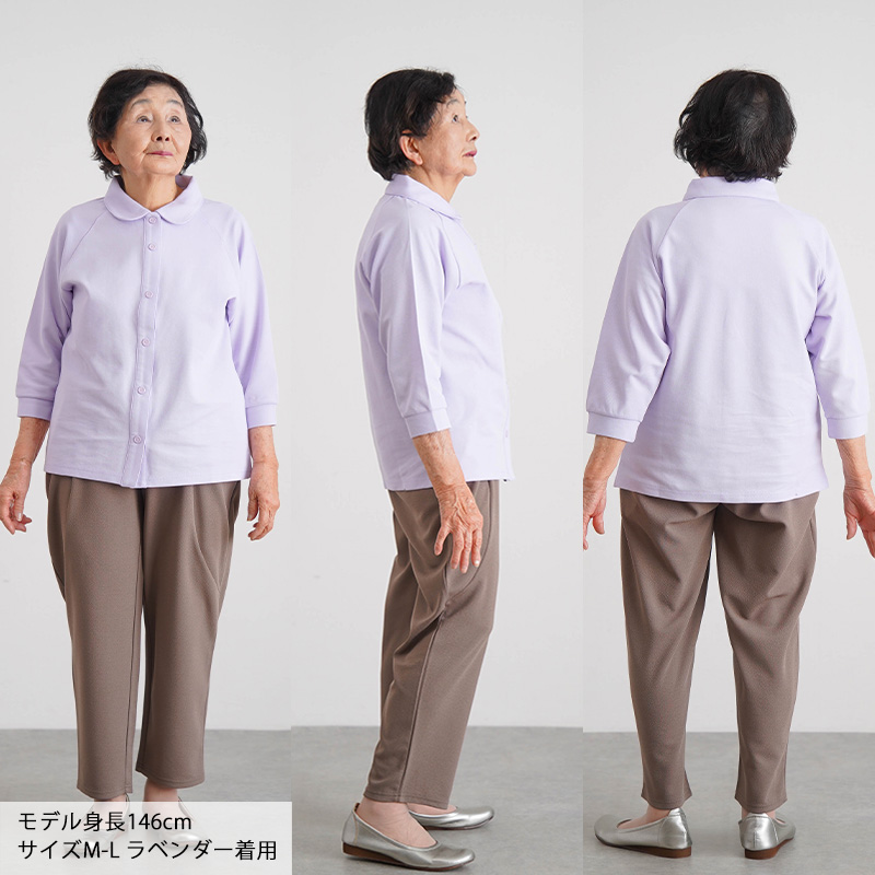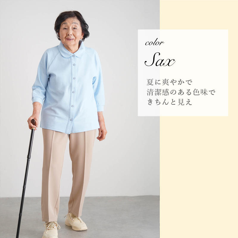 柔らかいコットンの感触が心地よく、日常使いやリハビリ着・施設着にもぴったりです。