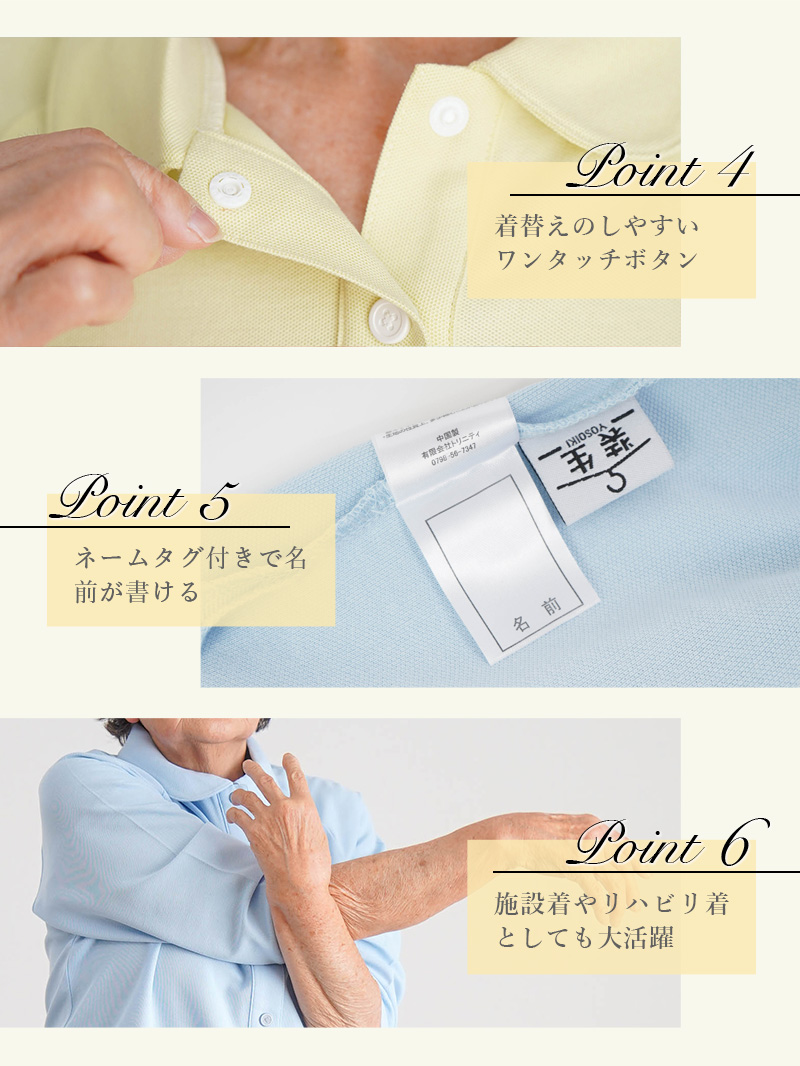 ●乾燥機対応で施設での洗濯も安心。縮みにくくお手入れラクラクです。