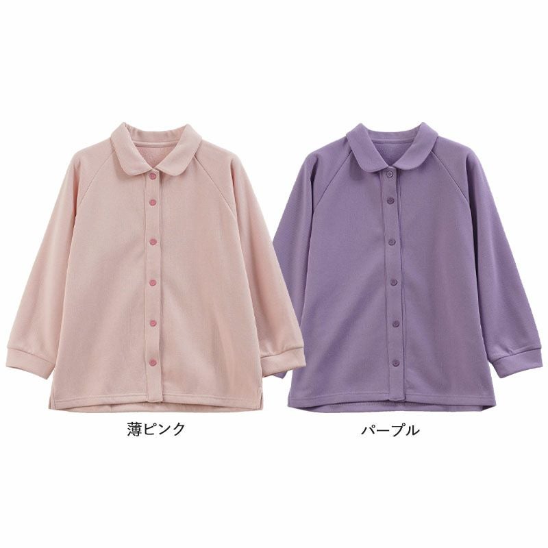 [装生] 乾燥機対応 婦人 あったか裏起毛 前開き スナップボタン ポロシャツ