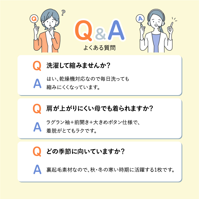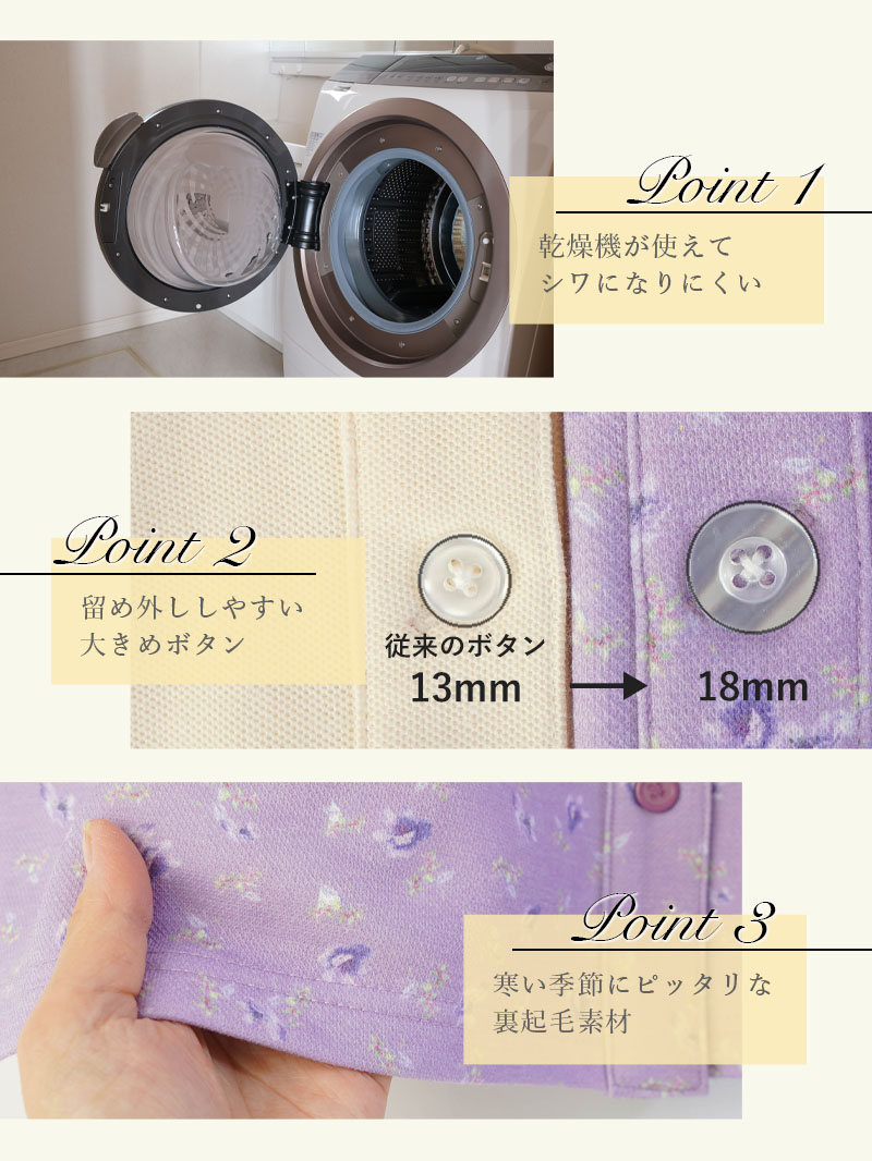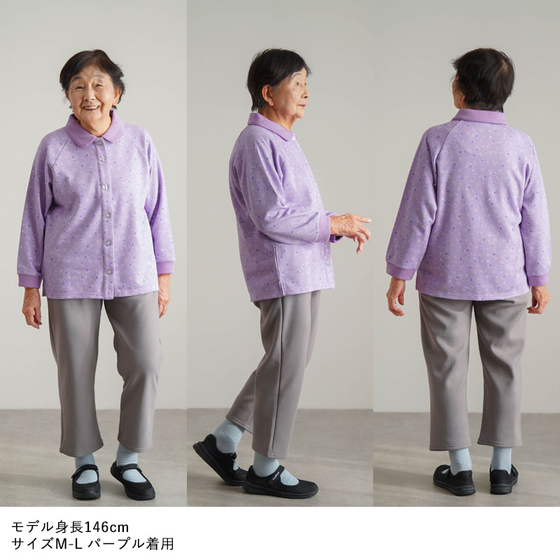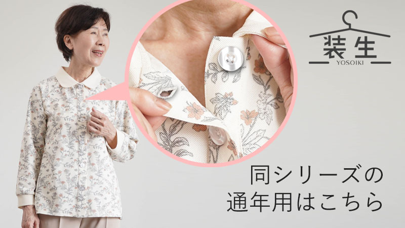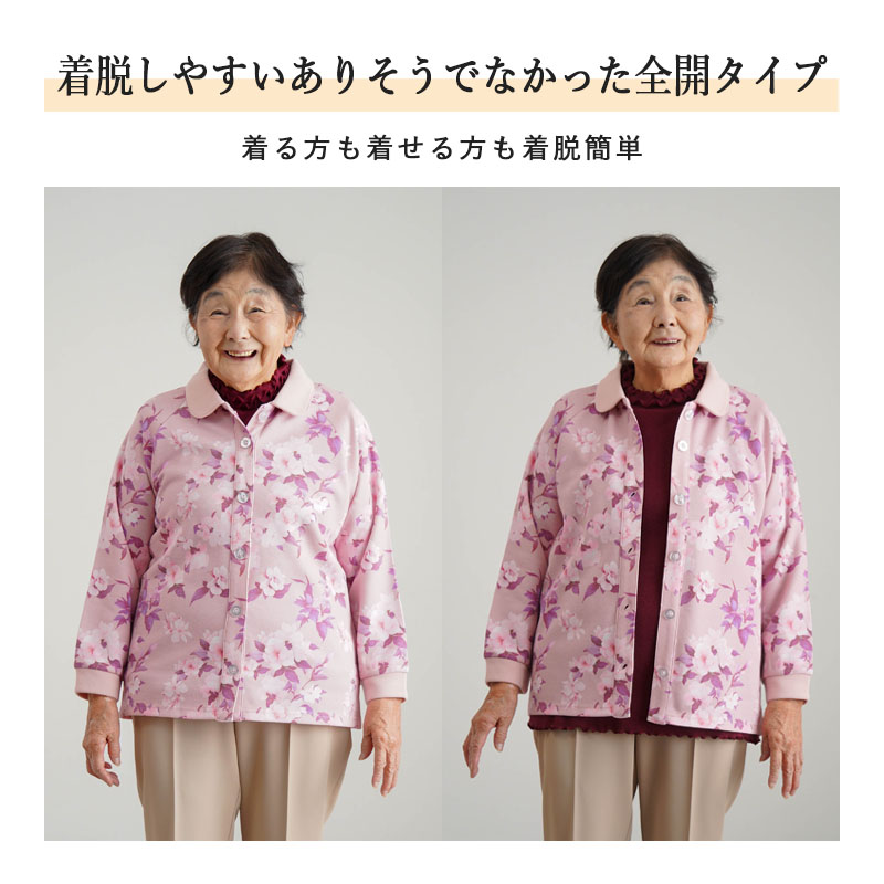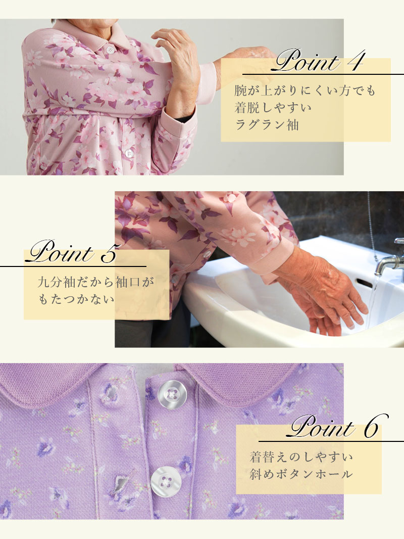 ●腕が上がりにくい方でもラクに着られるラグラン袖&前開き仕様。
