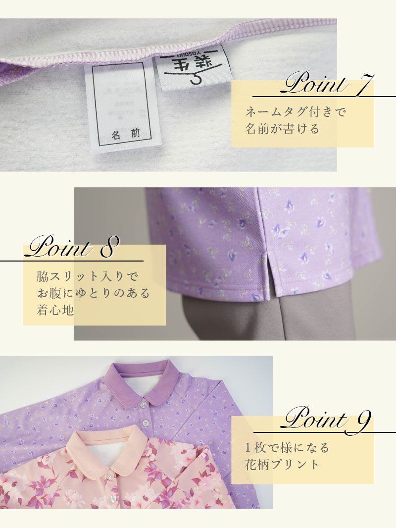 ●乾燥機対応で施設での洗濯も安心。縮みにくくお手入れラクラクです。