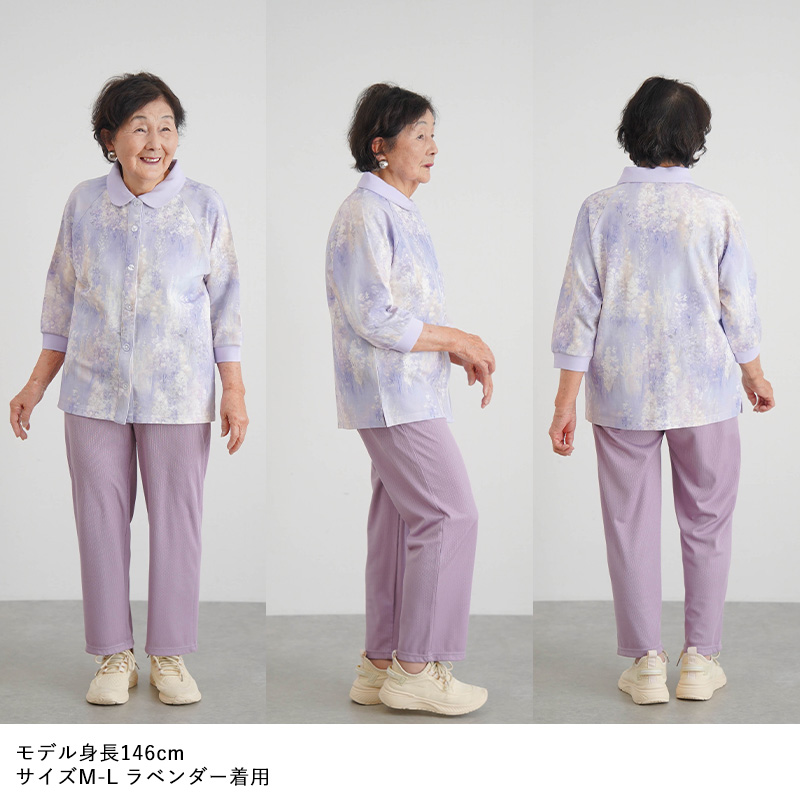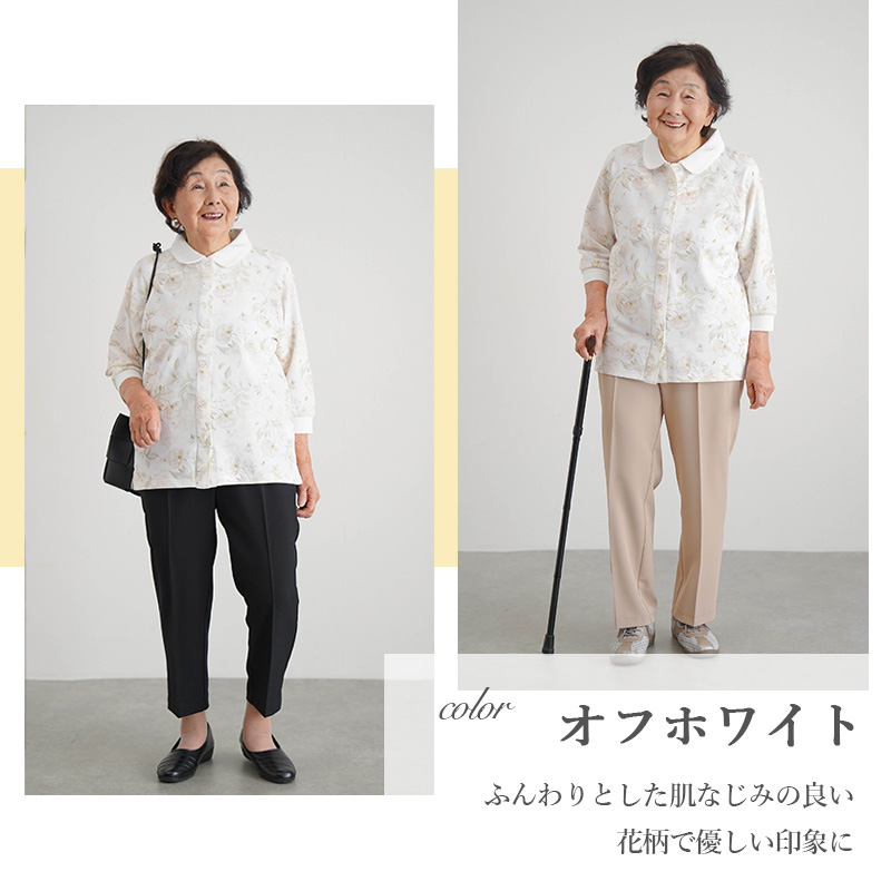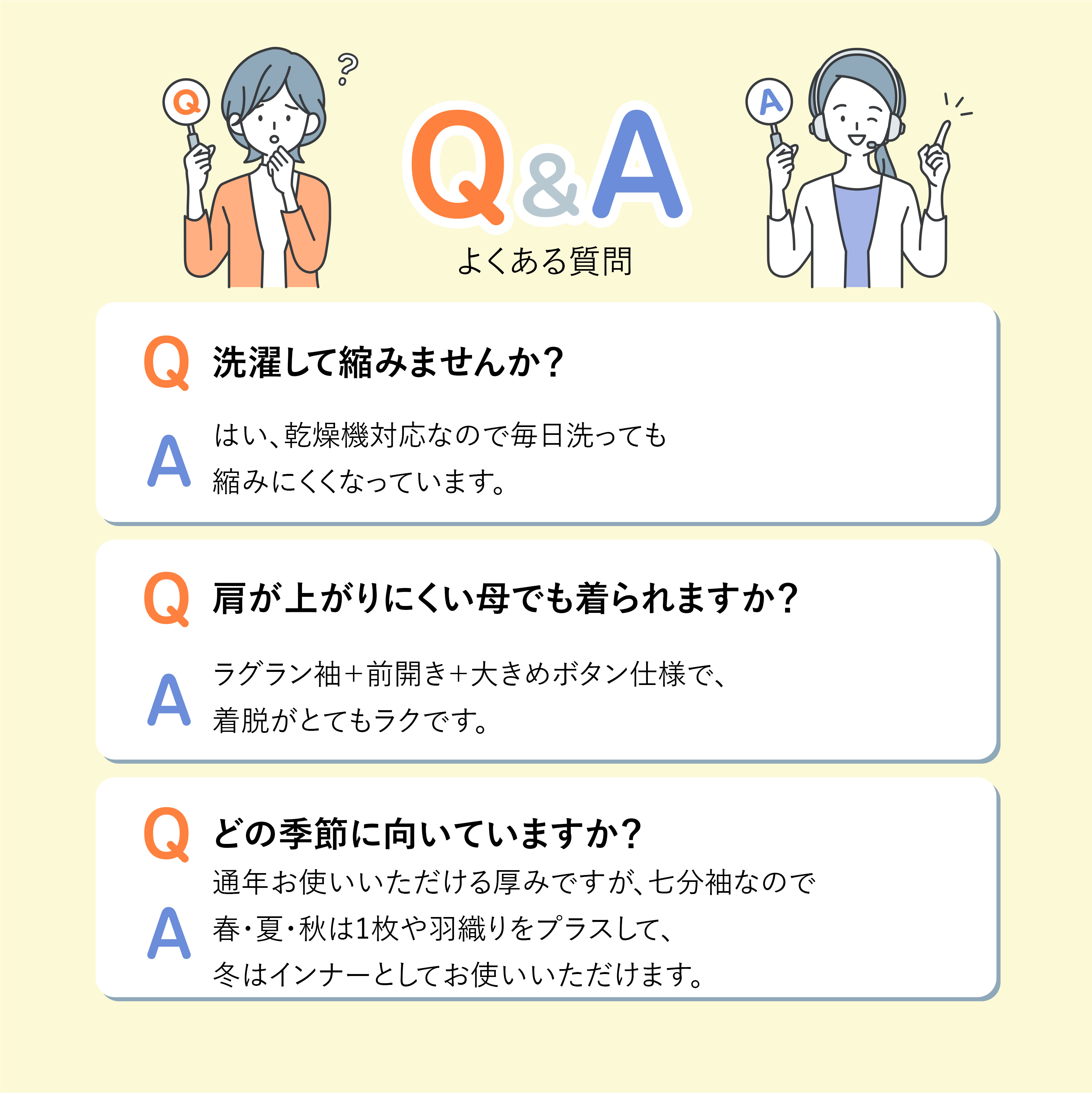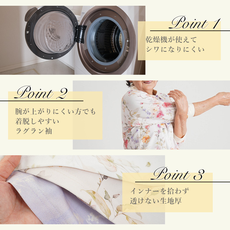 ●腕が上がりにくい方でもラクに着られるラグラン袖&前開き仕様。