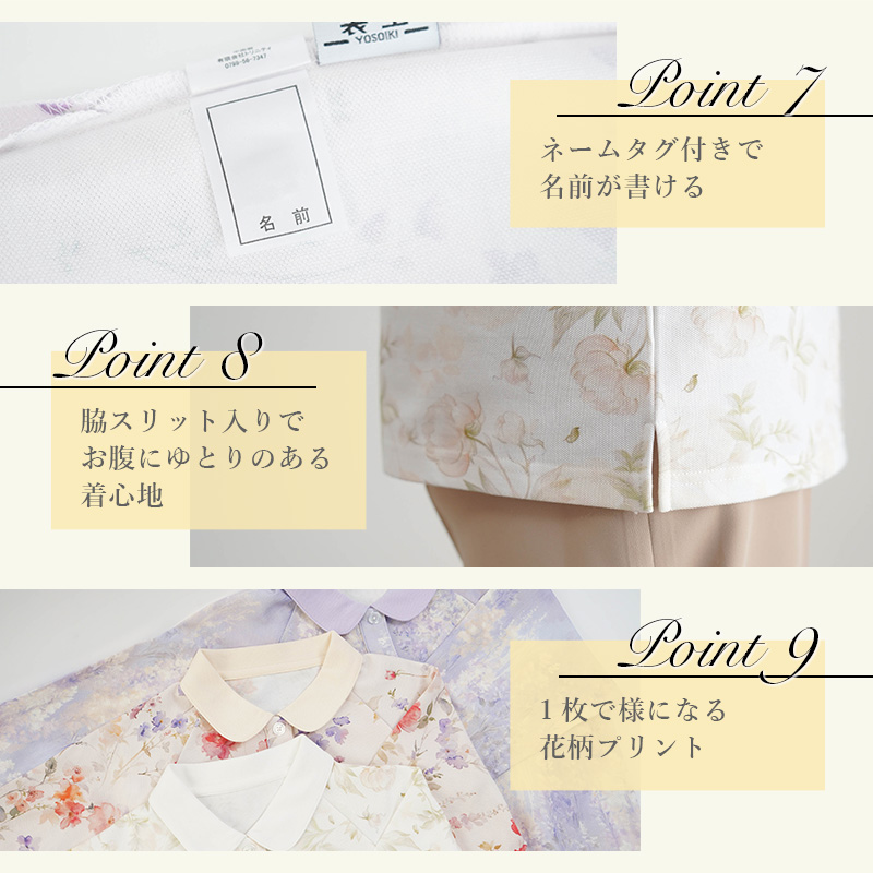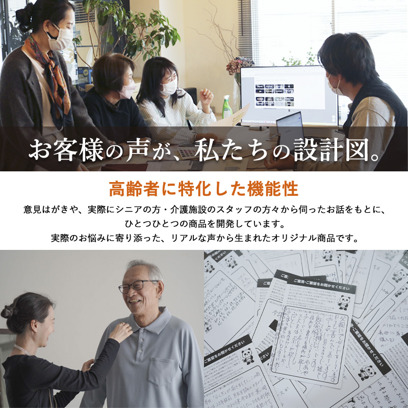 ●乾燥機対応で施設での洗濯も安心。縮みにくくお手入れラクラクです。