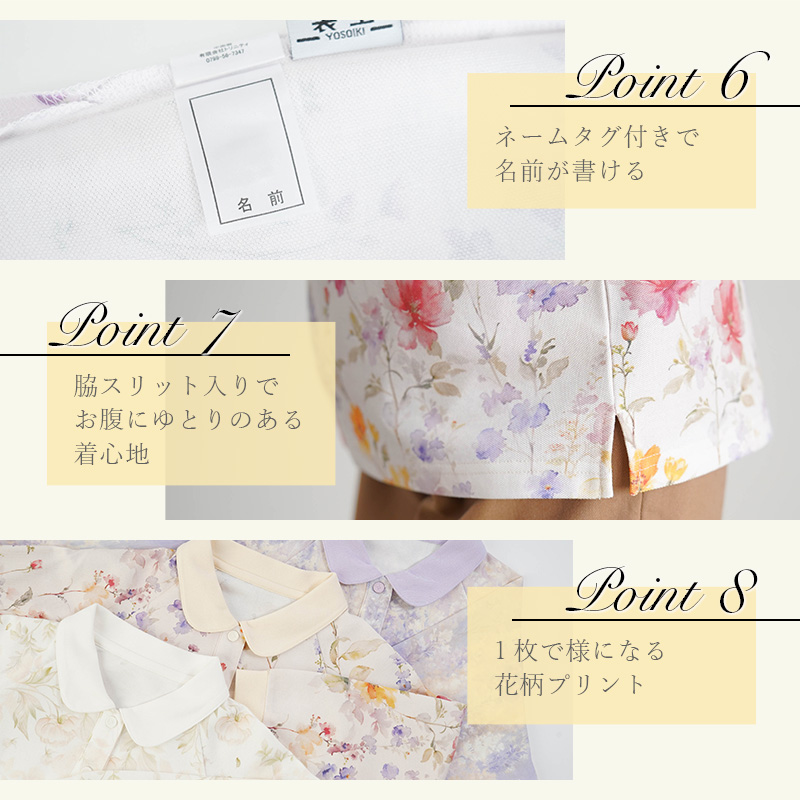 ●乾燥機対応で施設での洗濯も安心。縮みにくくお手入れラクラクです。
