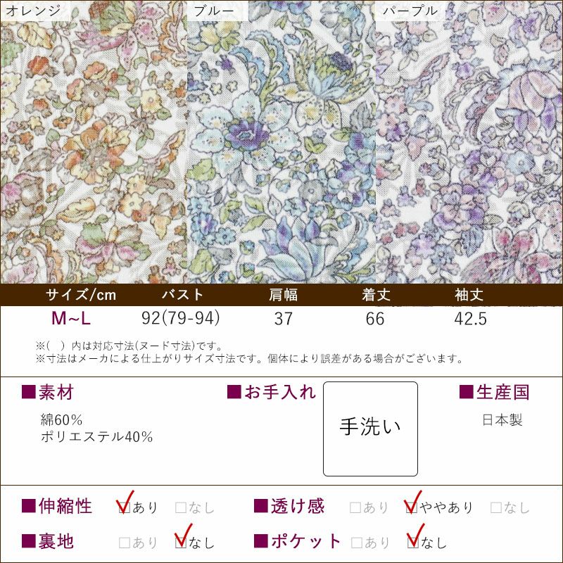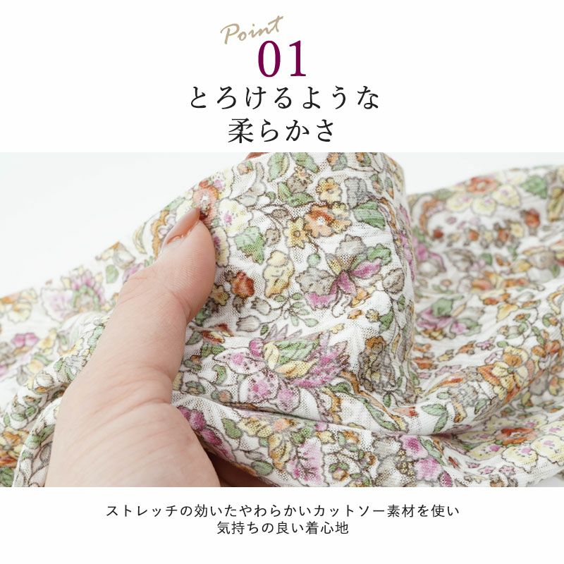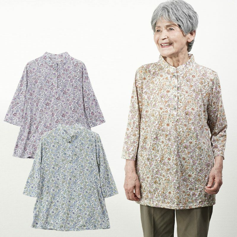 日本製 花柄 綿オパール七分袖ニットブラウス