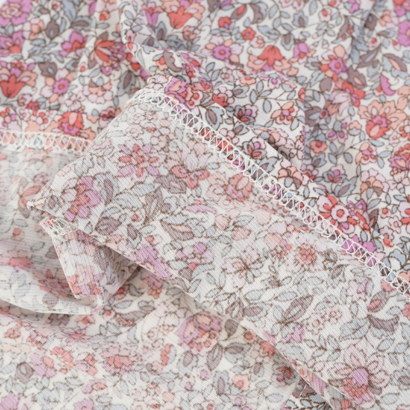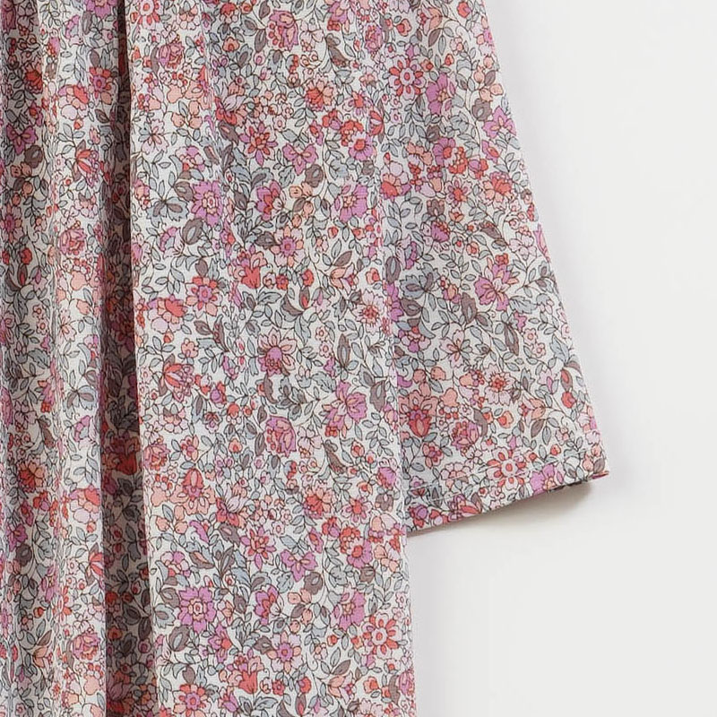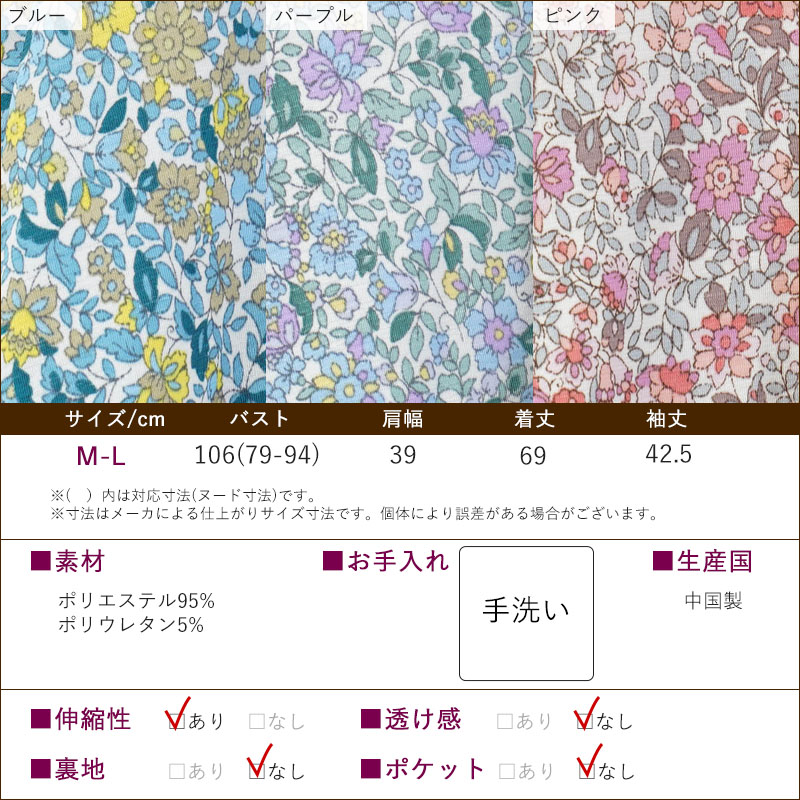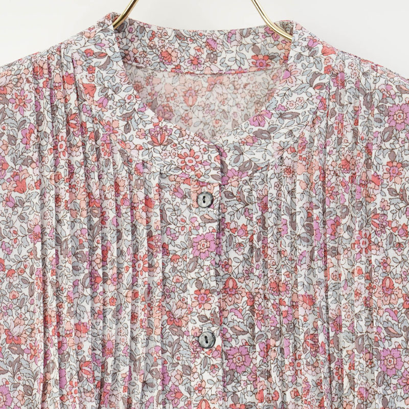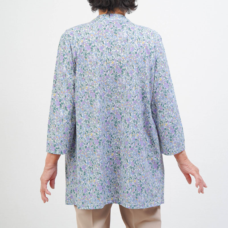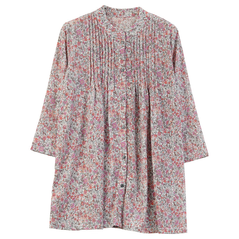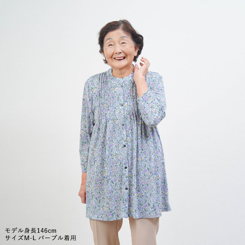 花柄 ピンタックストレッチ 七分袖ブラウス
