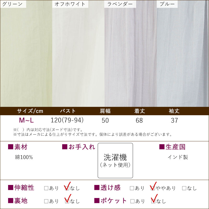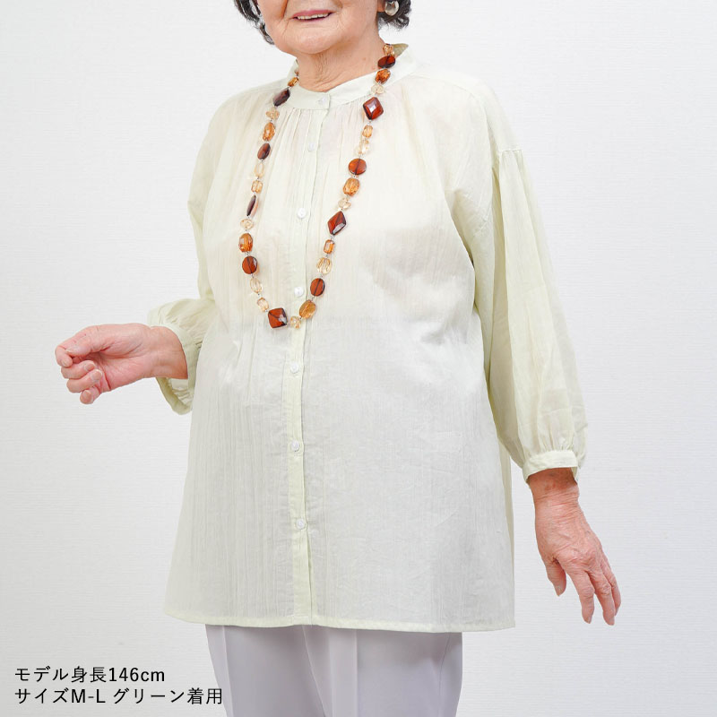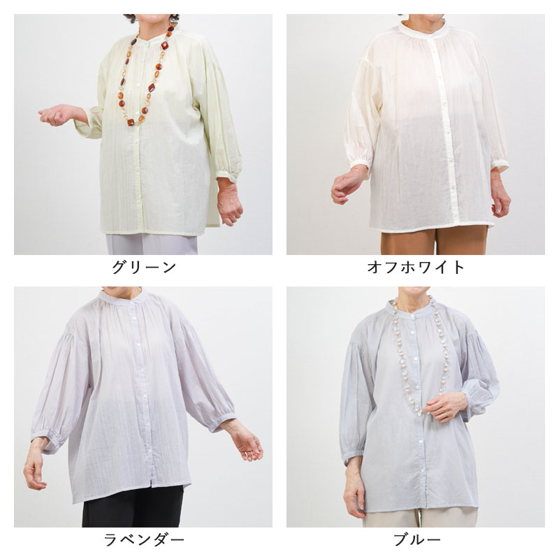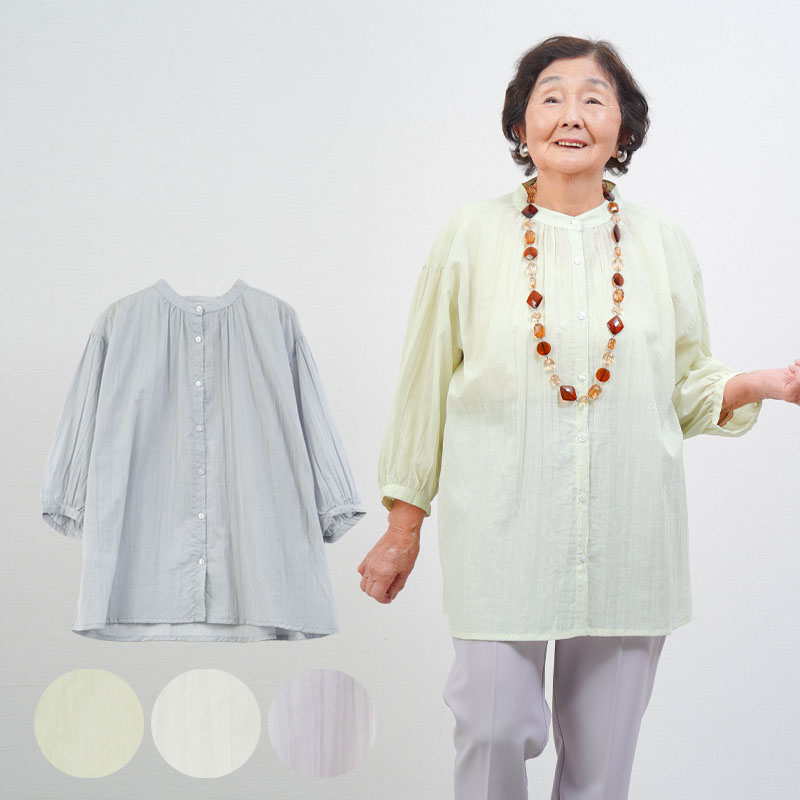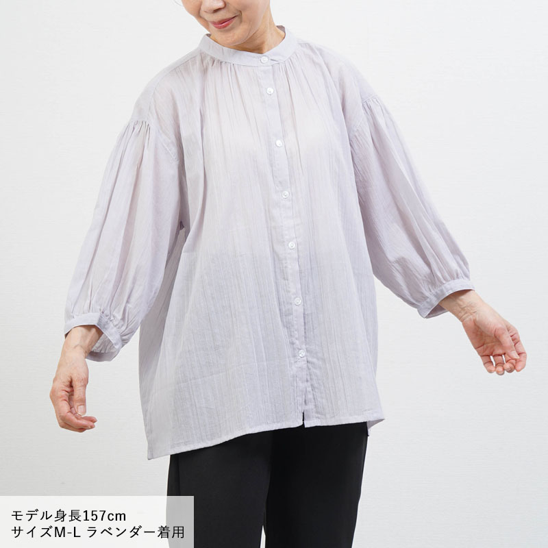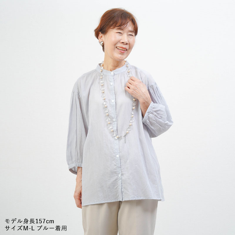 綿100% 強撚 楊柳 七分袖 ブラウス