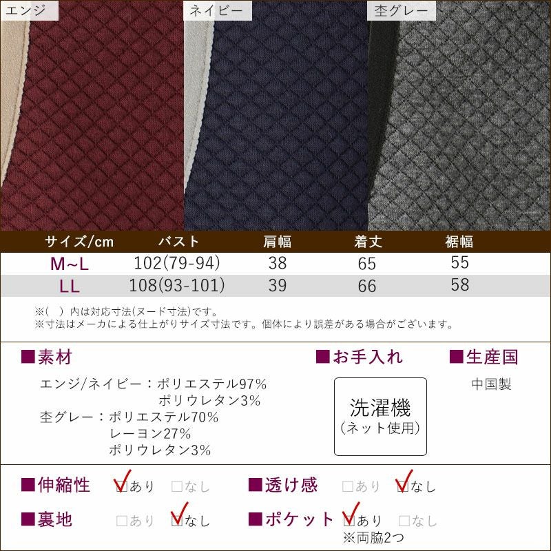 キルティング風のジャージーニット素材を使った気軽に着られる襟付きベスト。着心地がとても軽くてストレスにならないので、ホームウェアにもぴったりです。
