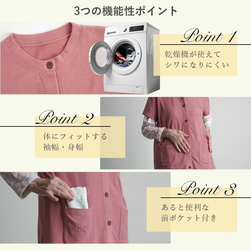 ●半袖の袖付きタイプで、肩先が冷えやすい方に特に喜ばれる仕様。