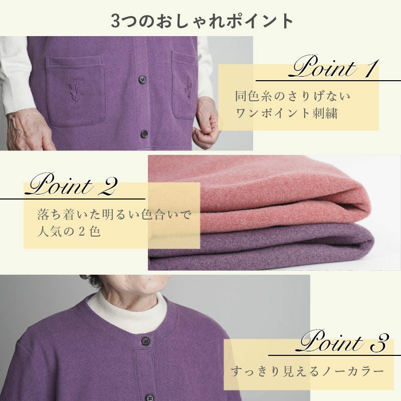 [装生 YOSOIKI] 乾燥機対応 あったか両面起毛 刺繍 襟なし袖付きベスト