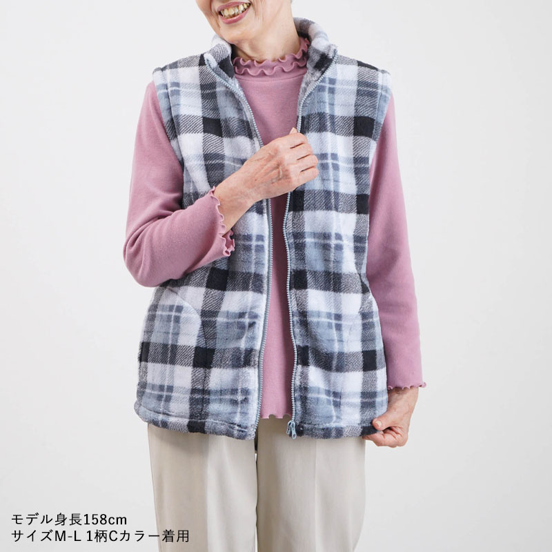 ●軽くて暖かいふわもこ素材:ふわふわの毛足の長いフリースを全面に使用し、軽くて暖かいベストです。寒い季節にぴったりのアイテムで、ふわもこの着心地が魅力です。