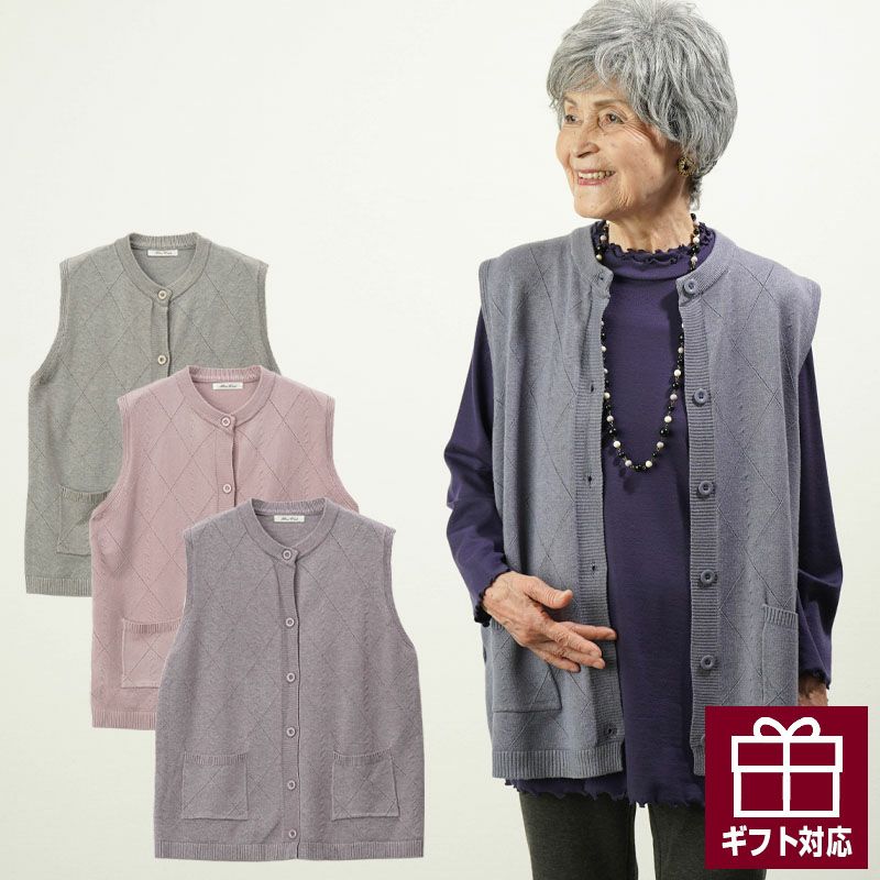 もちもちふんわり柔らかな肌触りの袖なしニットベスト。