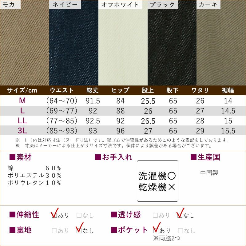 • 乾燥機対応 春秋用 さらさらきれい見えパンツ 股下58cm