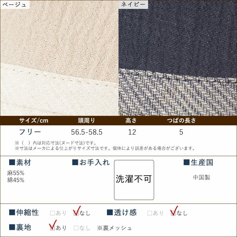 綿麻ガーゼ ハイバックハット