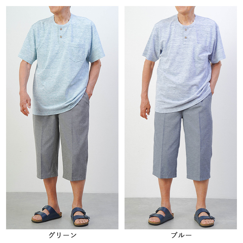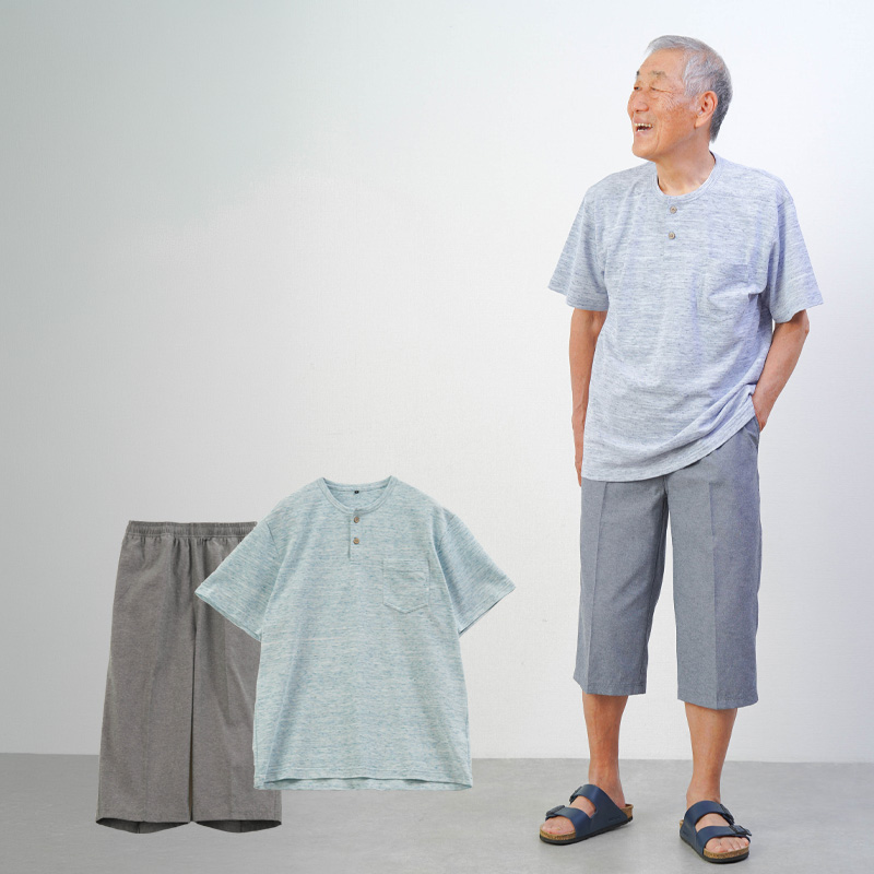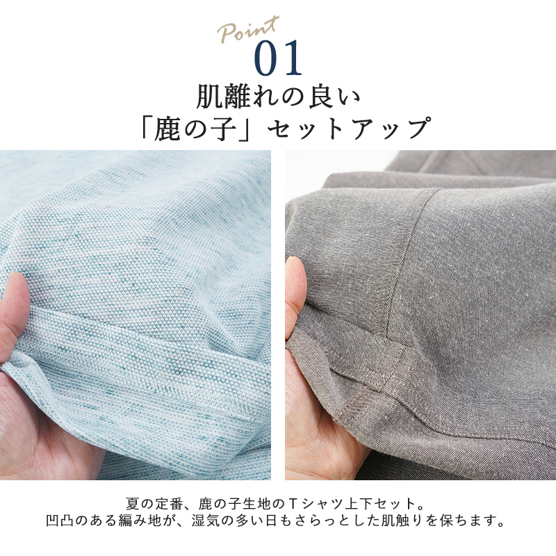 メランジ鹿の子 半袖Tシャツと七分丈ズボンの上下セット ルームウェア