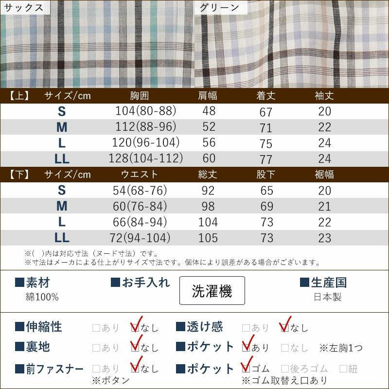 日本製 播州織 綿100% 冷感 半袖パジャマ
