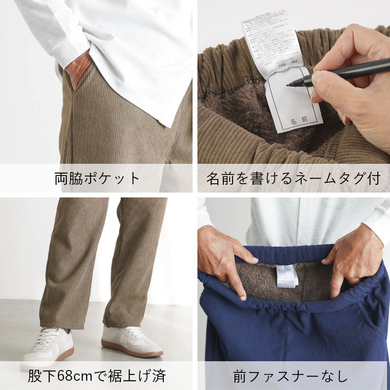 あったか コーデュロイ 裏ボア ゴム入れ替え パンツ 股下68cm