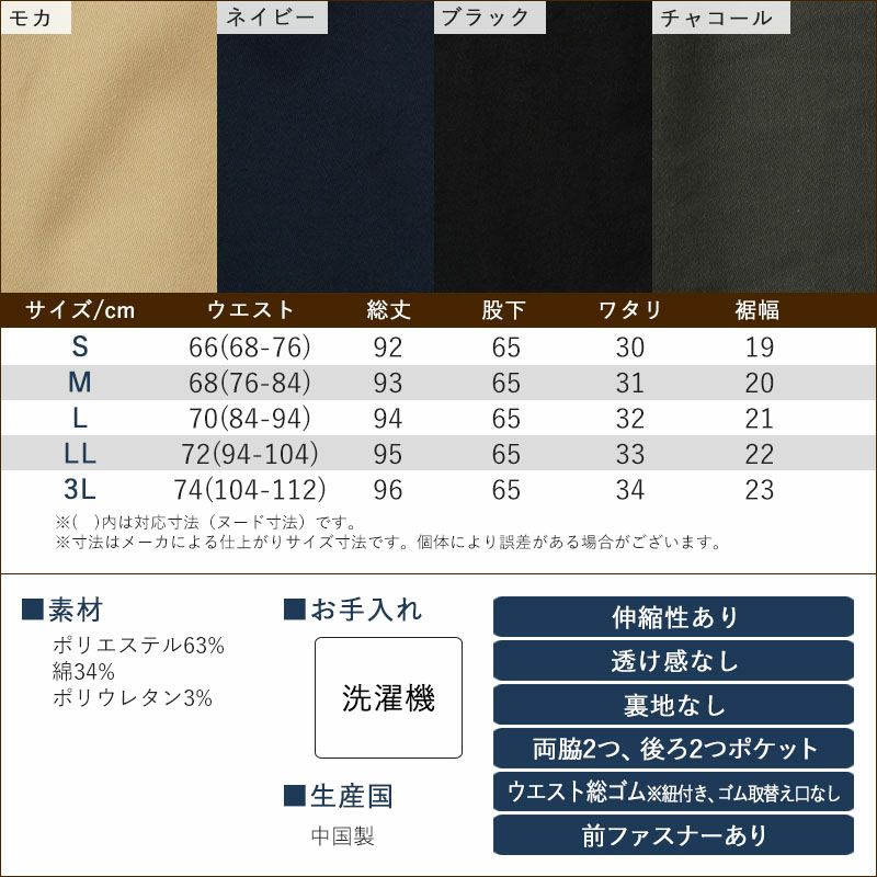 ウエスト総ゴム 楽に履ける ストレッチ チノパン 股下65cm