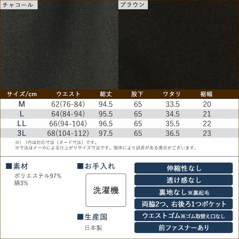 日本製 蓄熱保温サーモトロン ウール調 総ゴム 裏起毛 スラックスパンツ 股下65cm