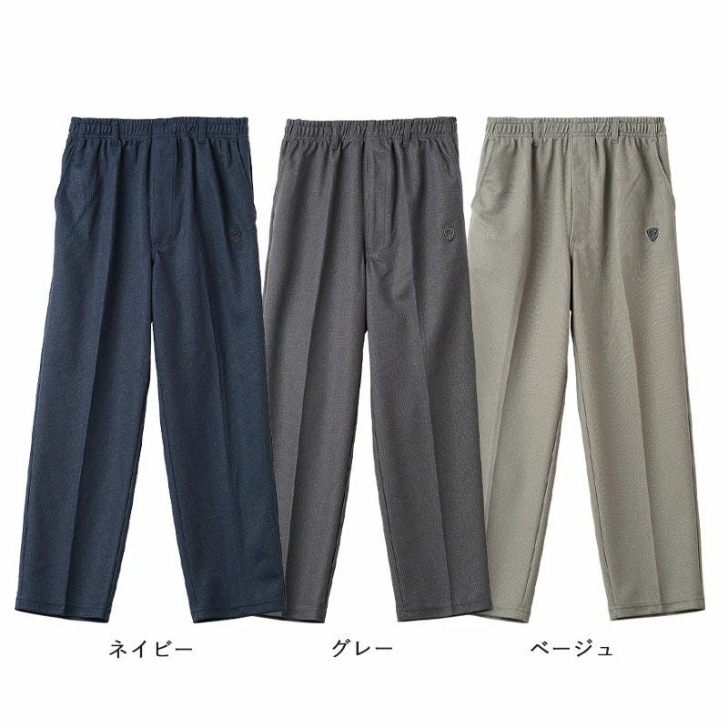 ジャージのような履き心地なのにおでかけOKのストレッチスラックス。ウエストは総ゴムで、楽に脱ぎ着ができます。細かな杢調プリントのストレッチ素材を使用し、春・秋向きの厚すぎず薄すぎない素材です。ベルトループ・前ファスナー付きなので、今までのスラックスと同じように履いていただけます。
