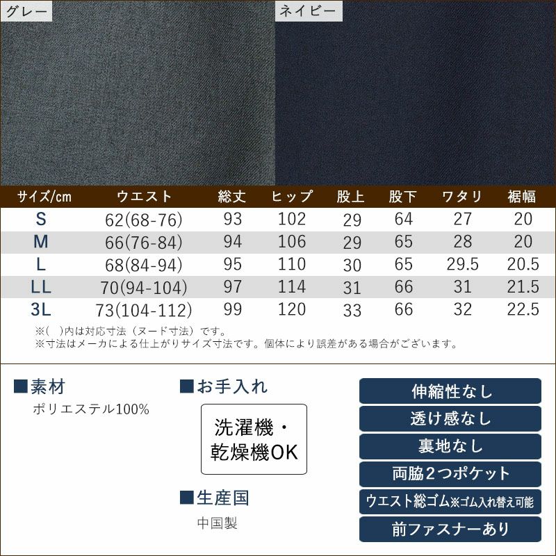 紳士用 乾燥機対応 ゴム入れ替え スラックス 股下64~66cm